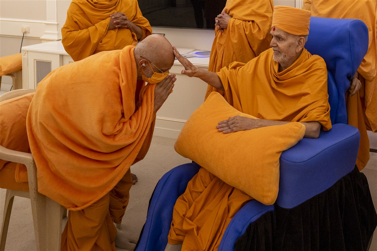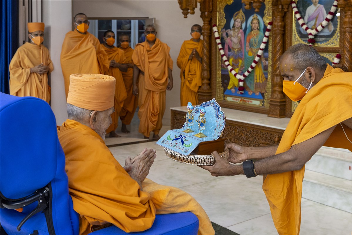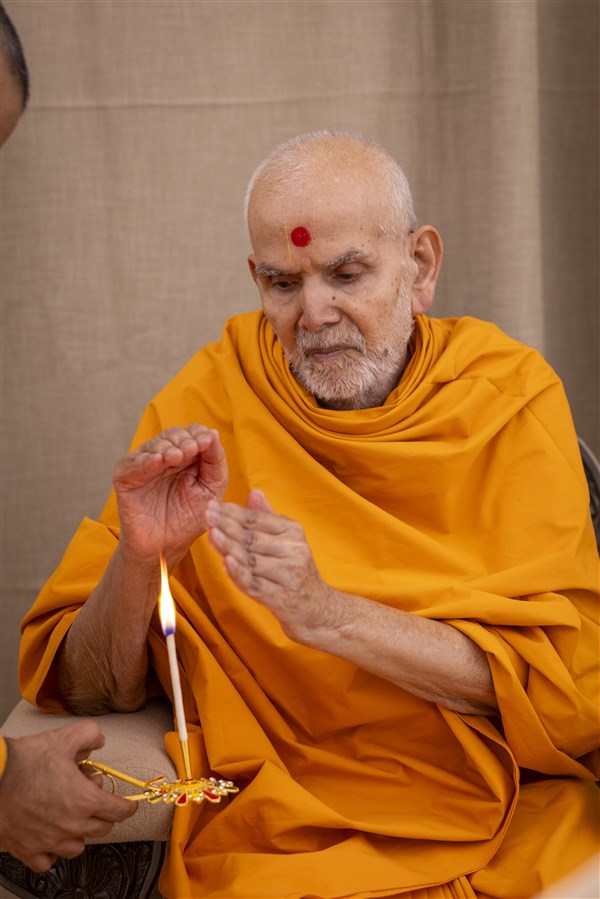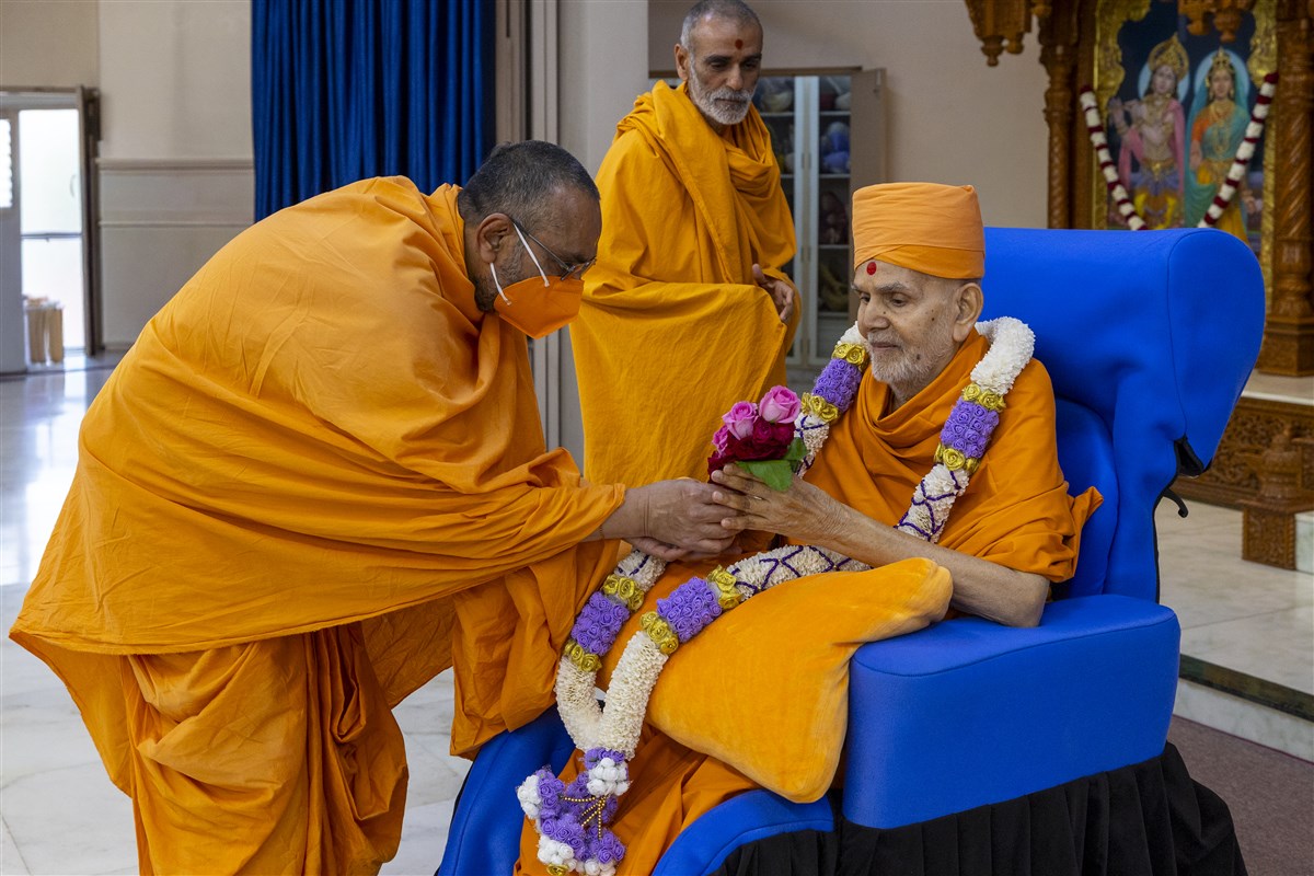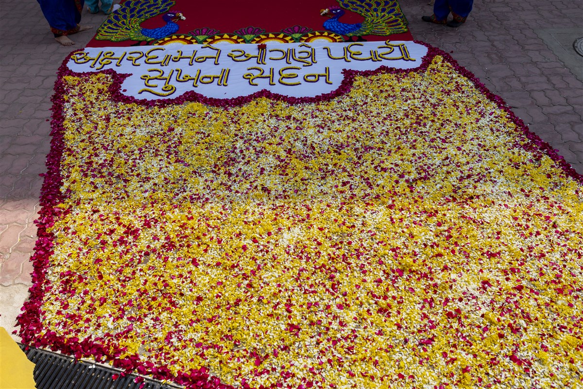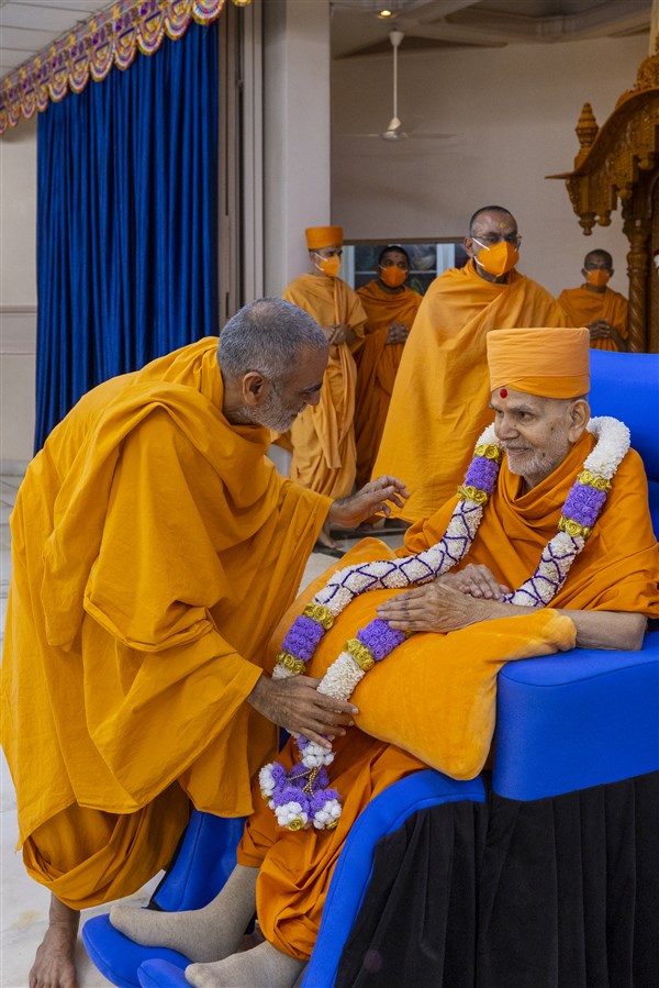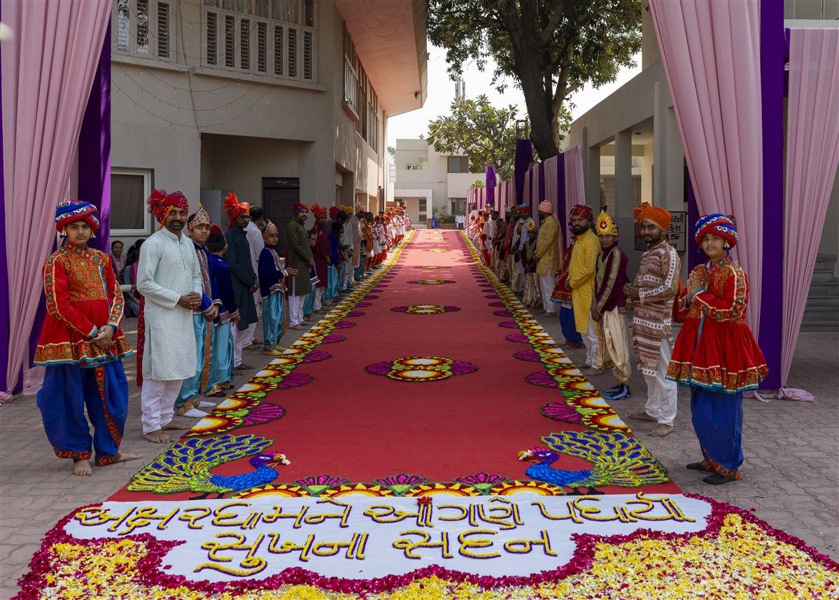 Param Pujya Mahant Swami Maharaj arrives at Swaminarayan Akshardham, Gandhinagar
