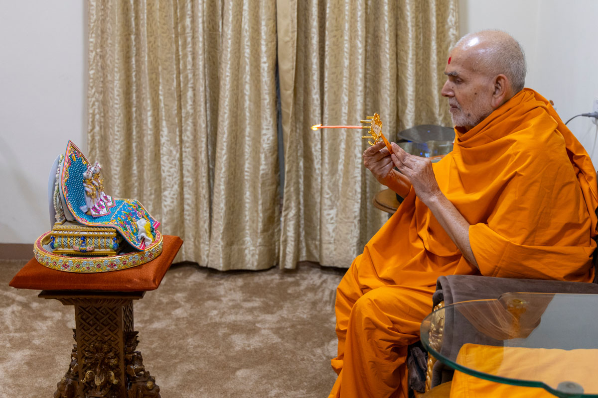 Shri Akshar-Purushottam Maharaj in Swamishri's daily puja