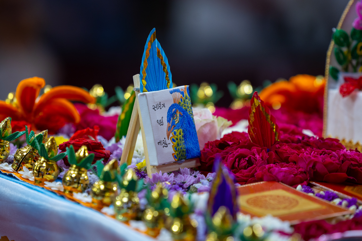 Decorations in Swamishri's daily puja