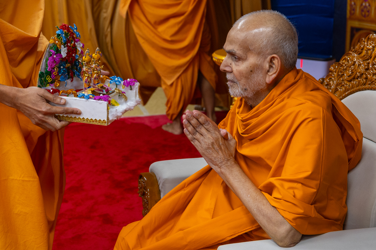 A devotee presents before Swamishri