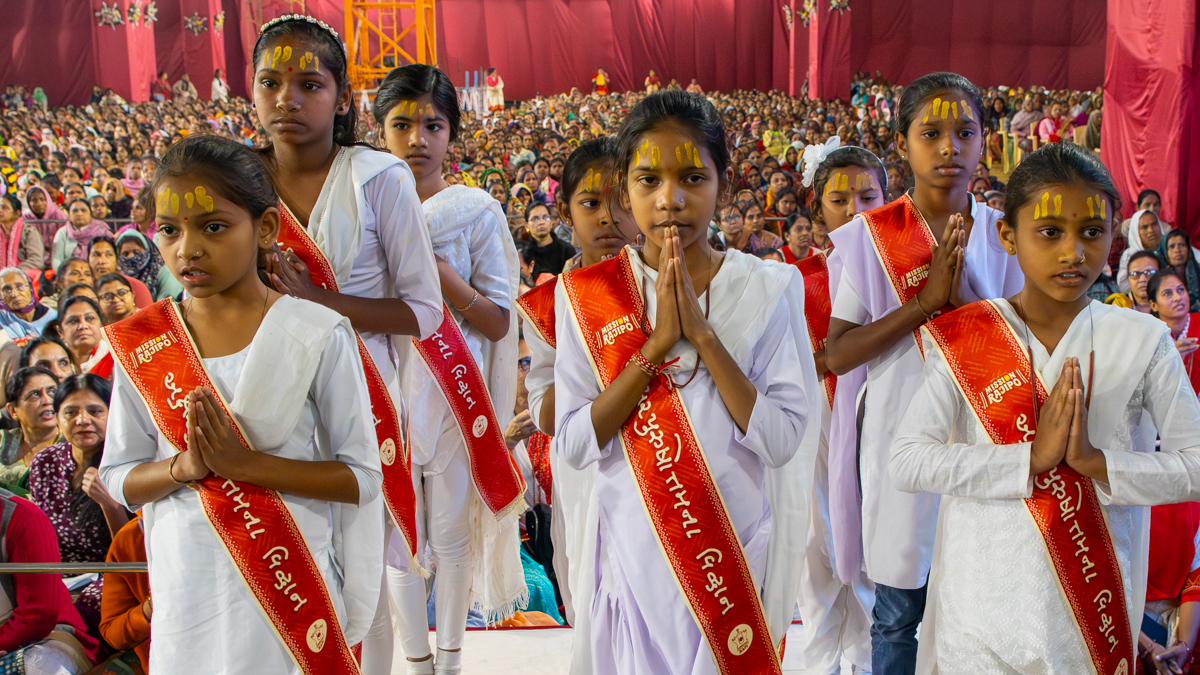 Balikas doing darshan of Swamishri