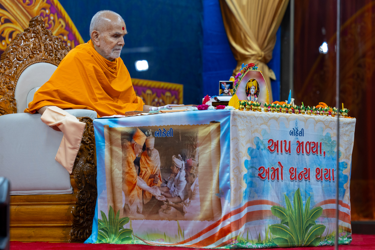 Swamishri blesses the morning assembly