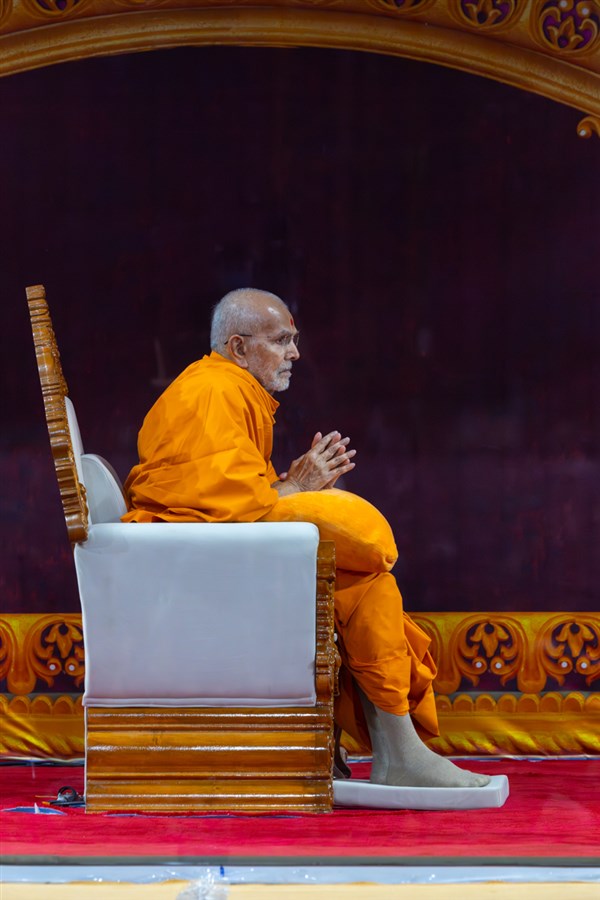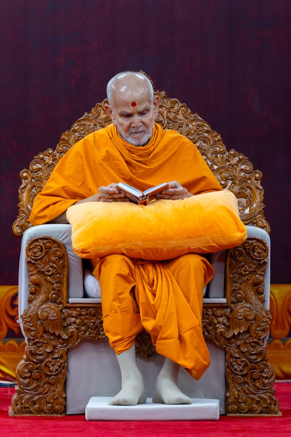 Swamishri listens to the sadhana mantra and daily prayer