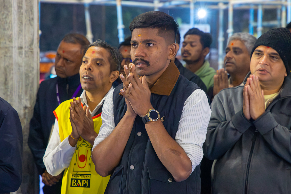 Devotees doing darshan of the arti