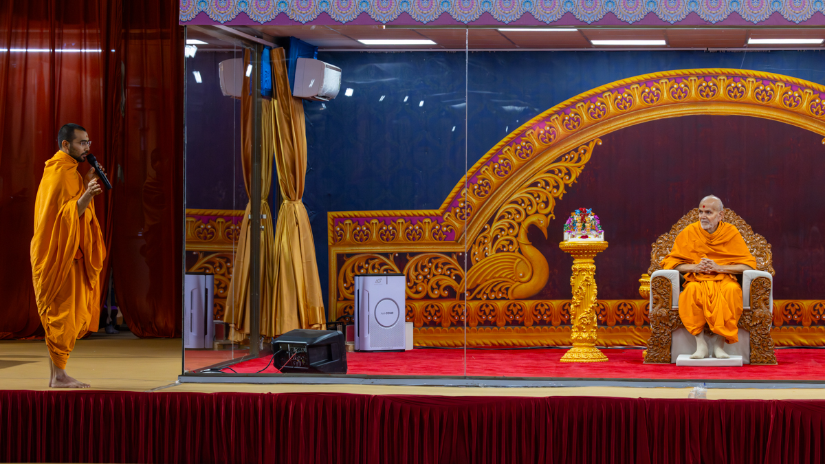 A swami presents before Swamishri