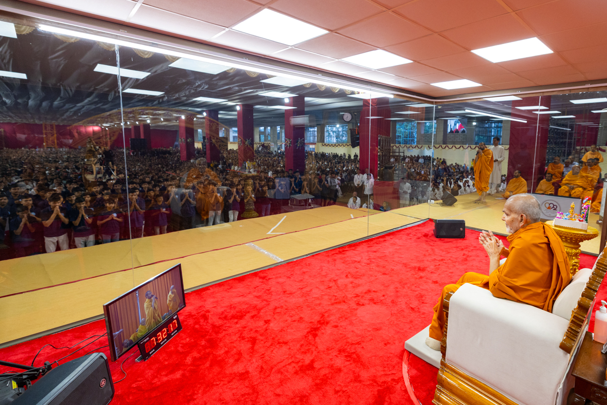 Swamishri greets all with folded hands