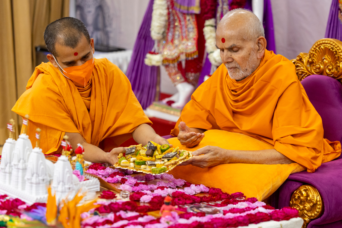 Swamishri offers thal to Thakorji