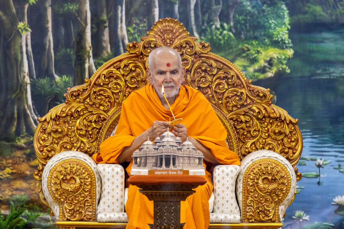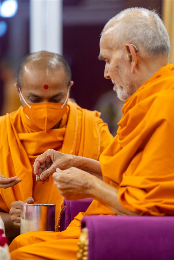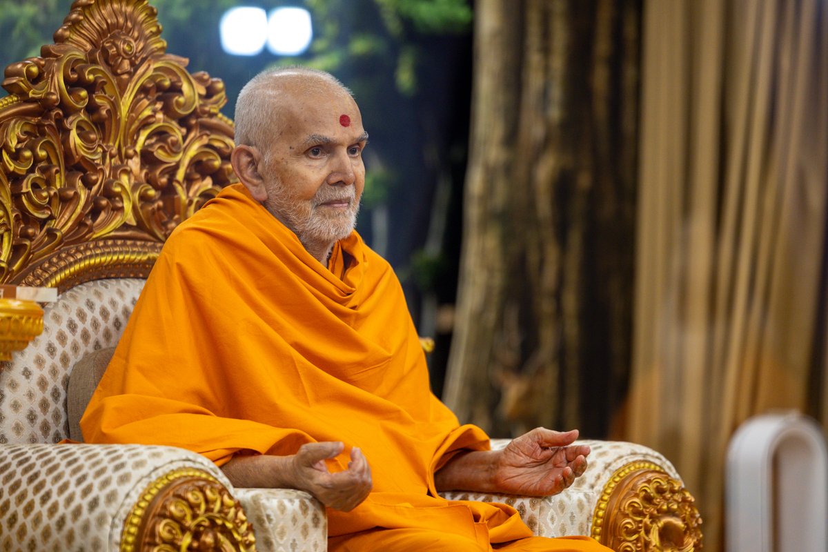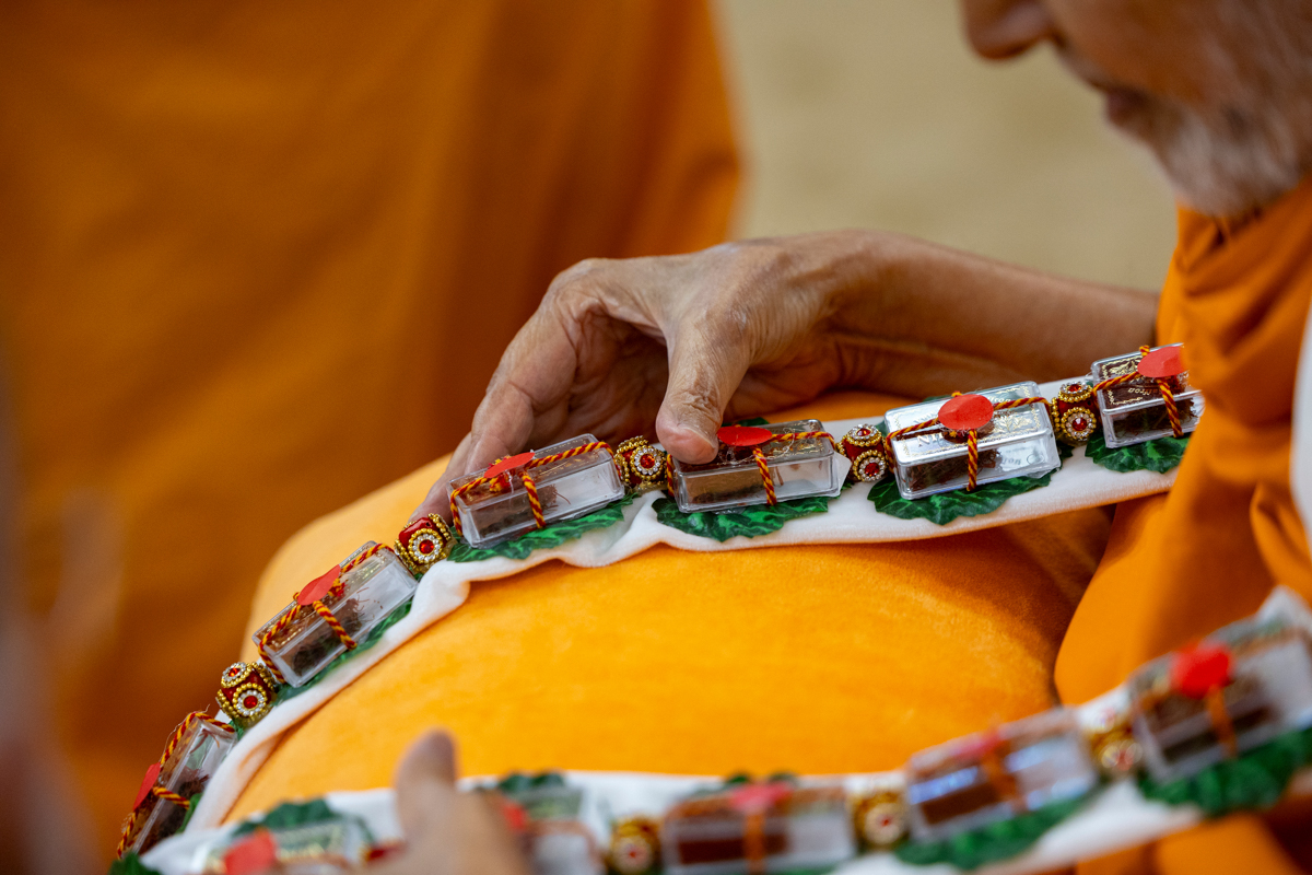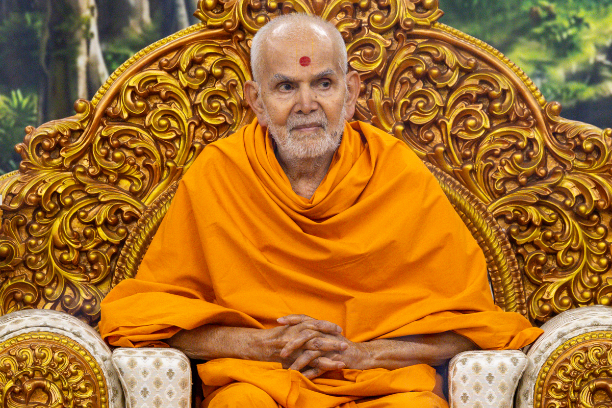 Swamishri observes a garland