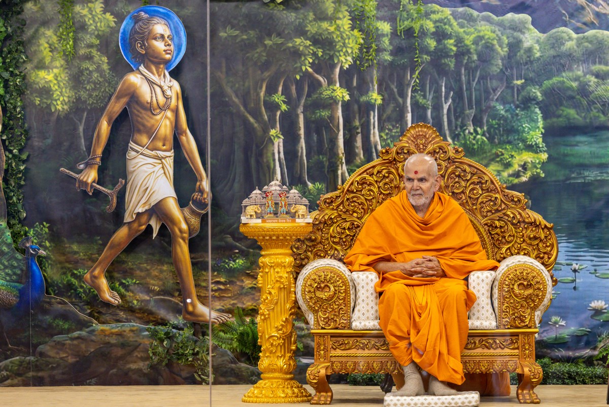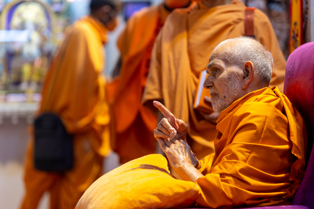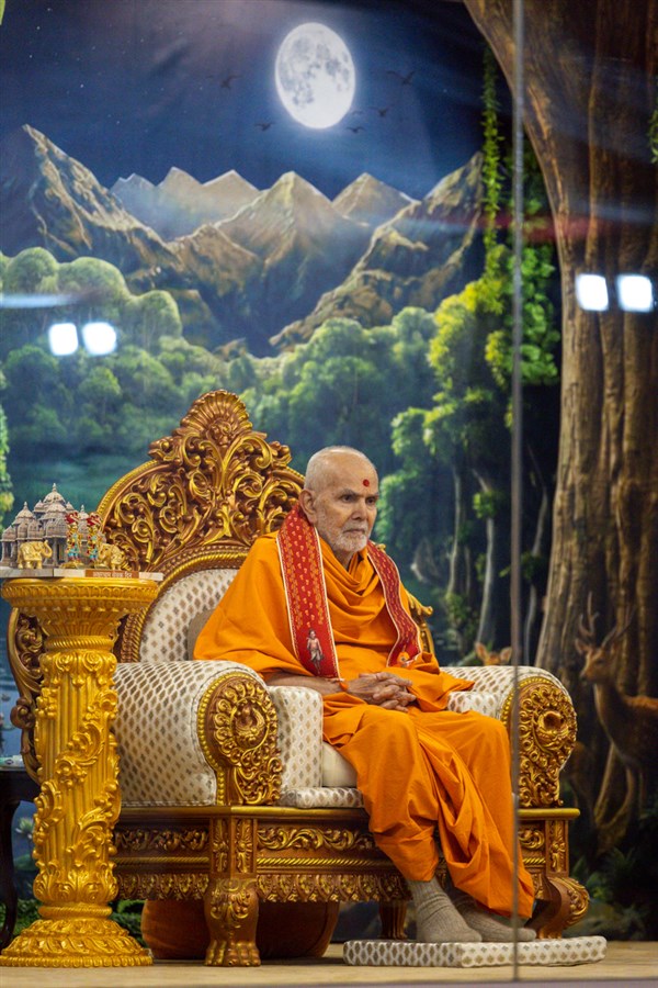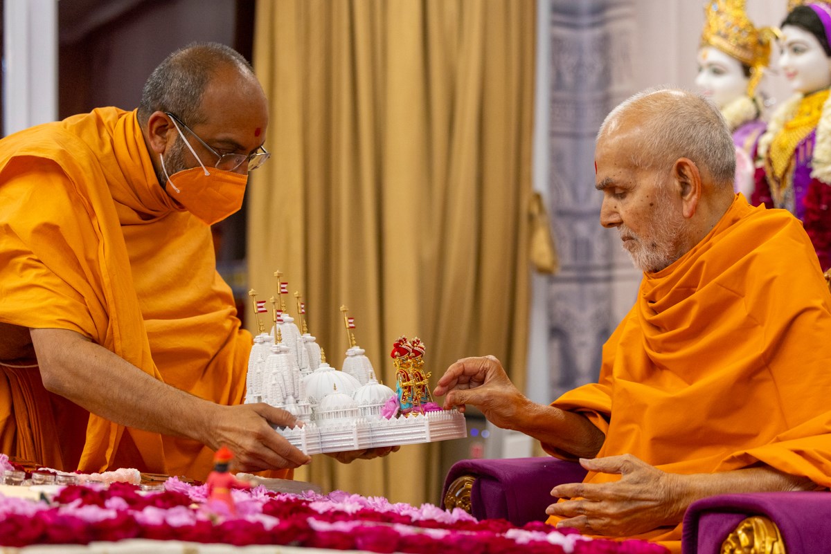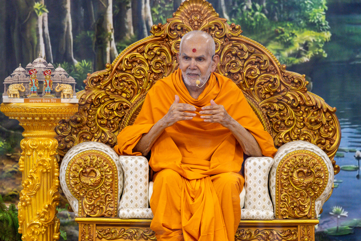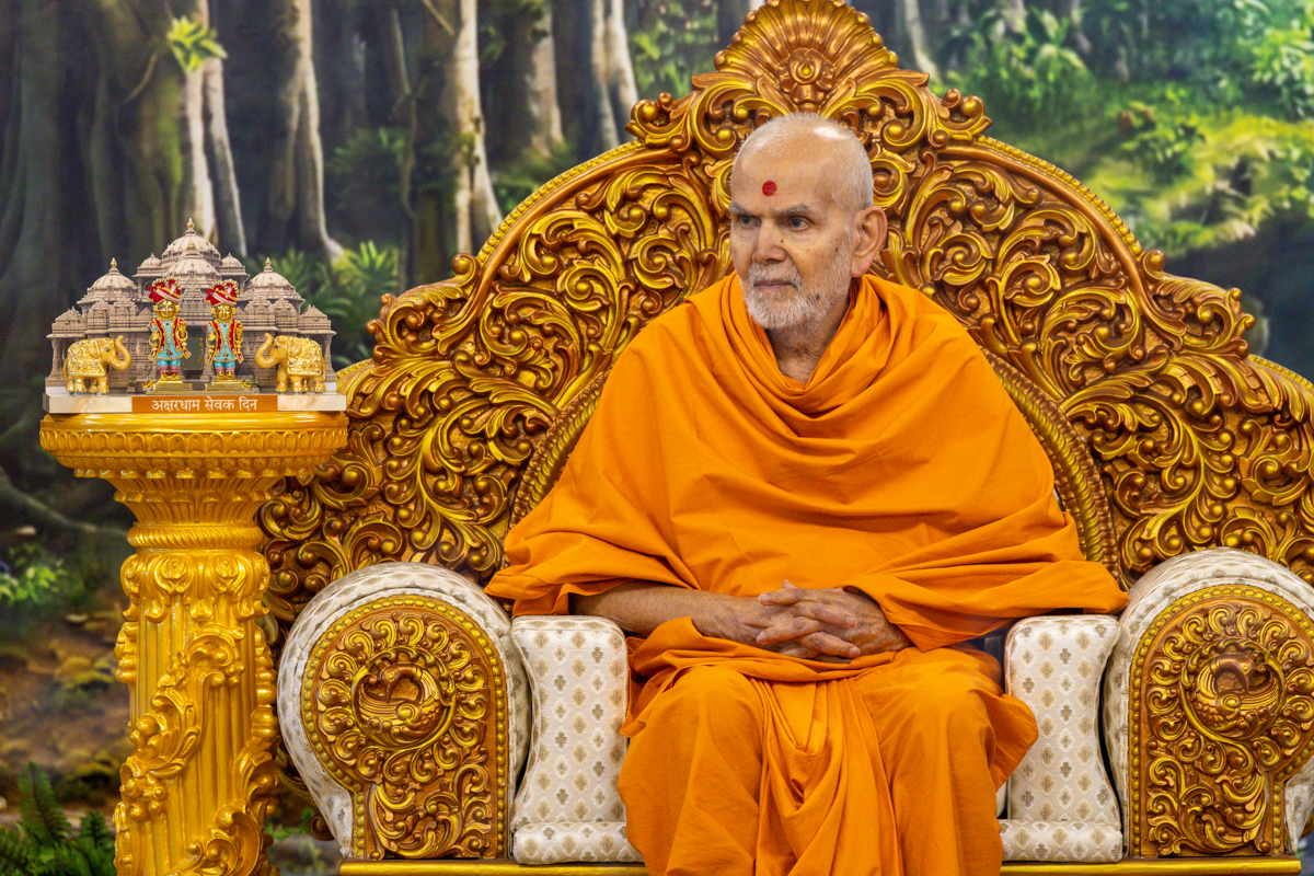 Swamishri observes a garland