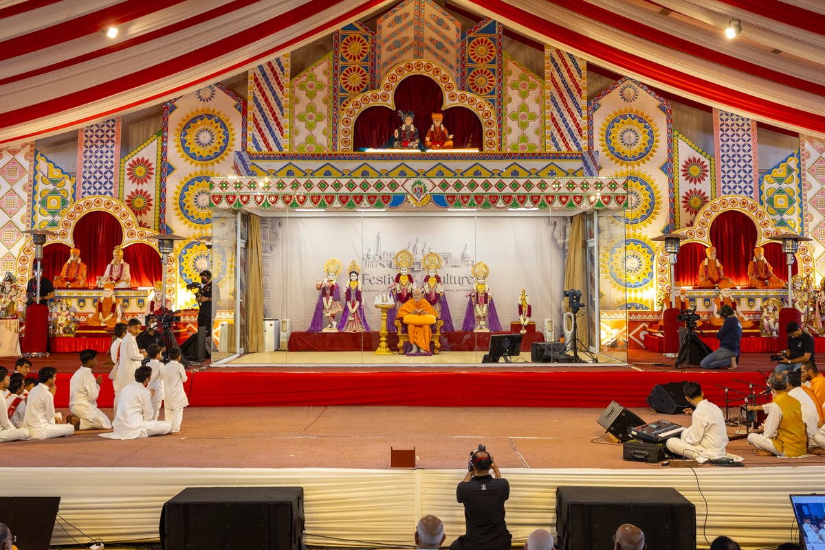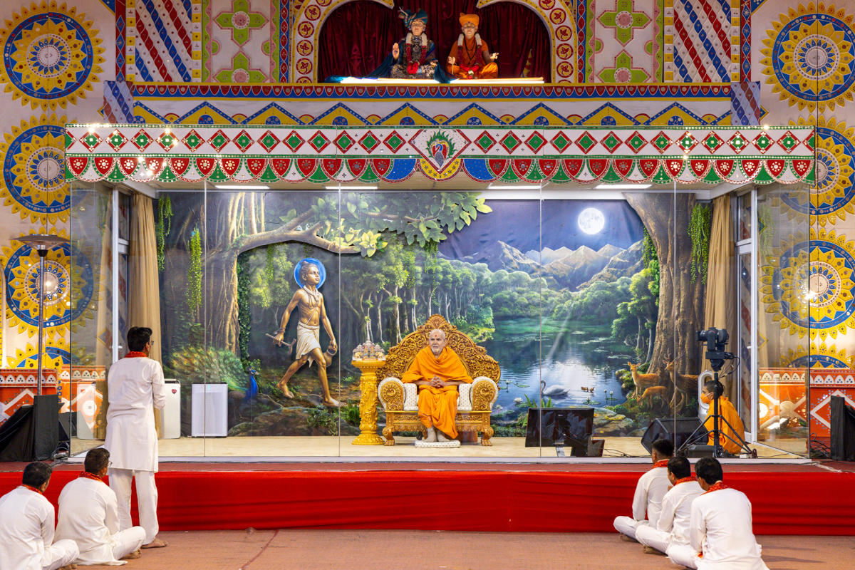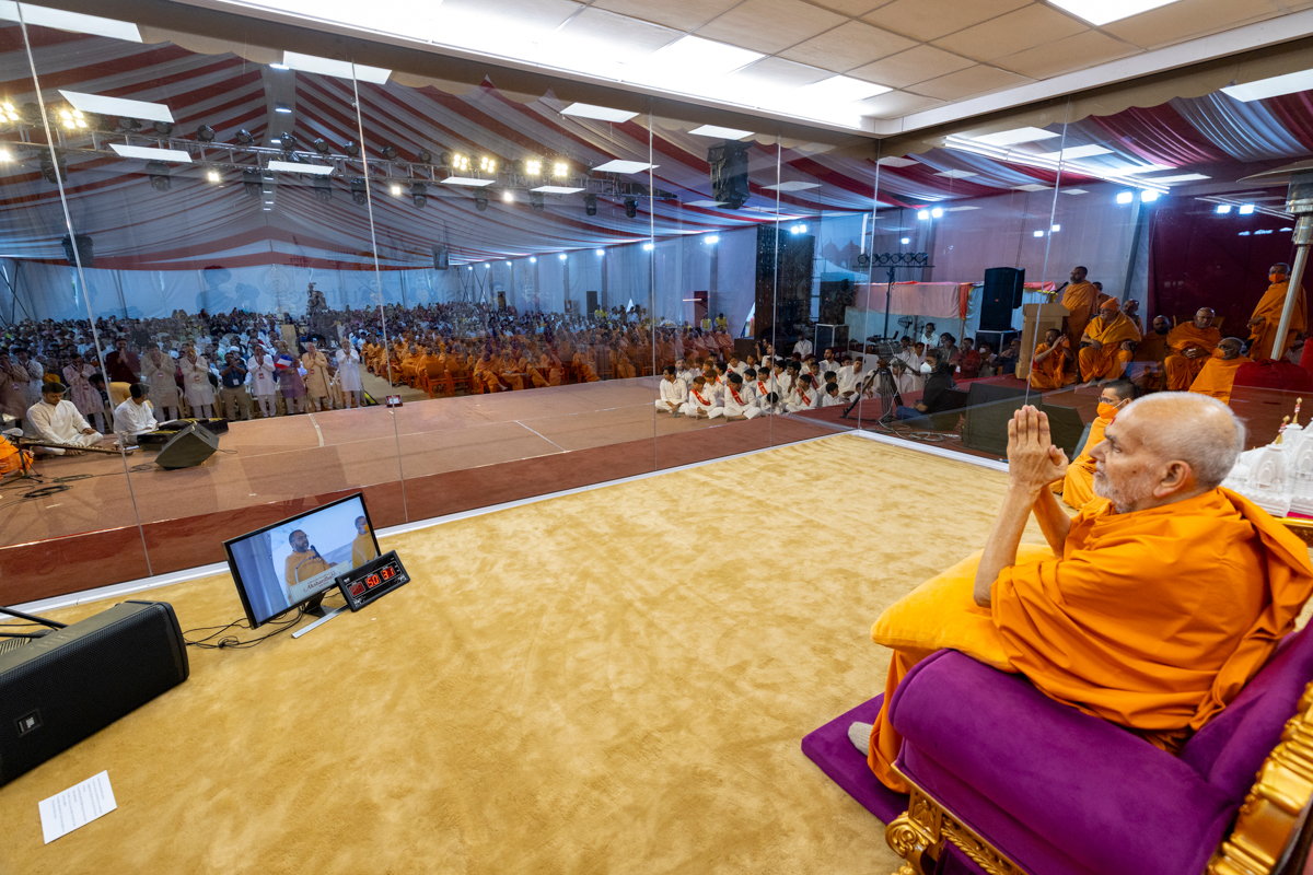 Swamishri watches the performance