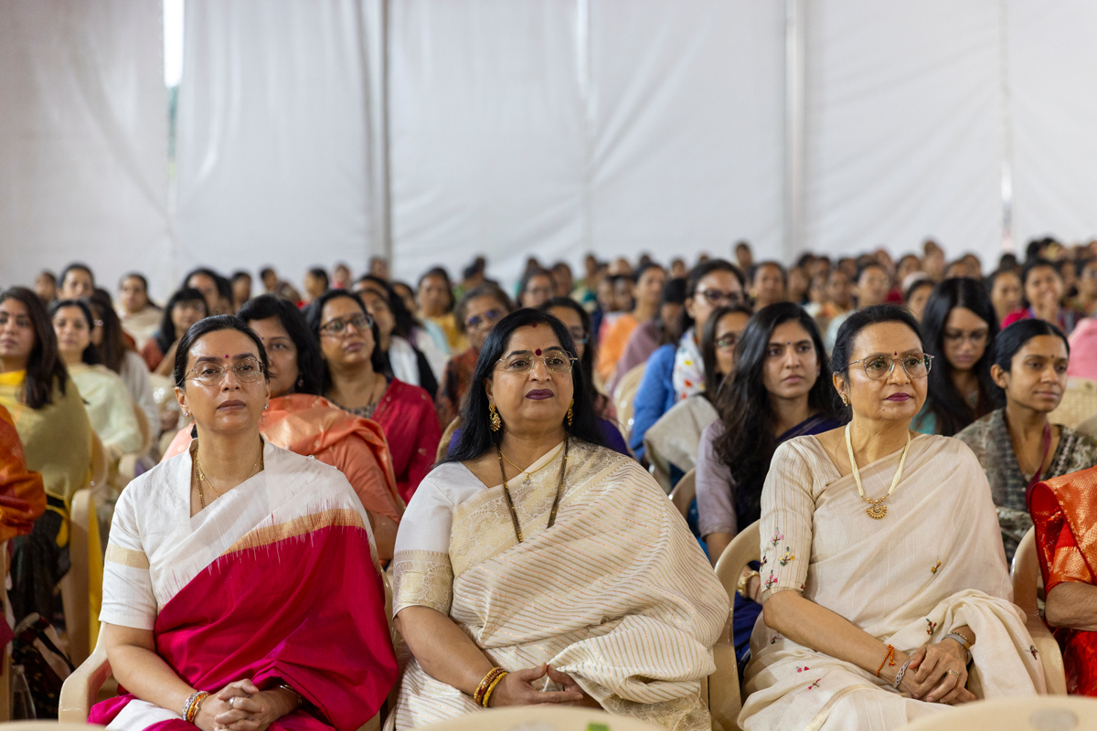 Senior swamis and devotees during the assembly