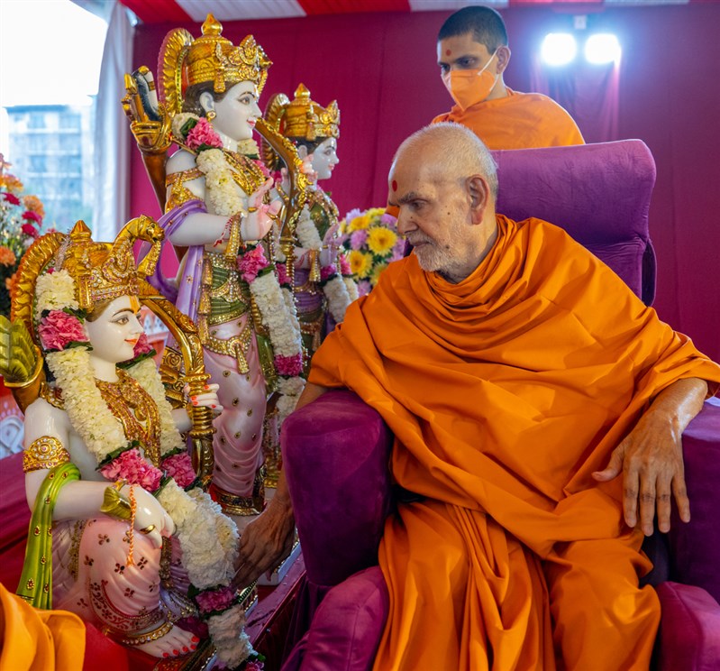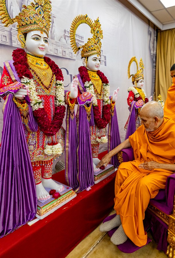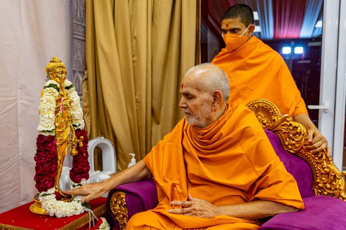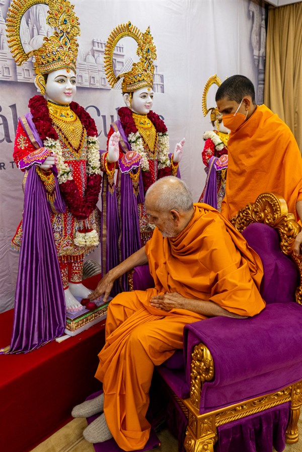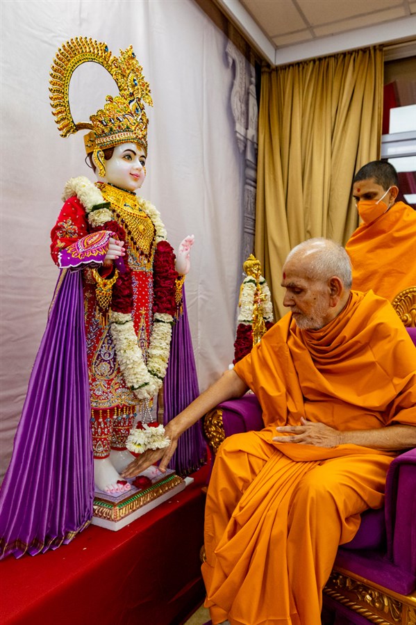 Swamishri performs the murti pujan rituals