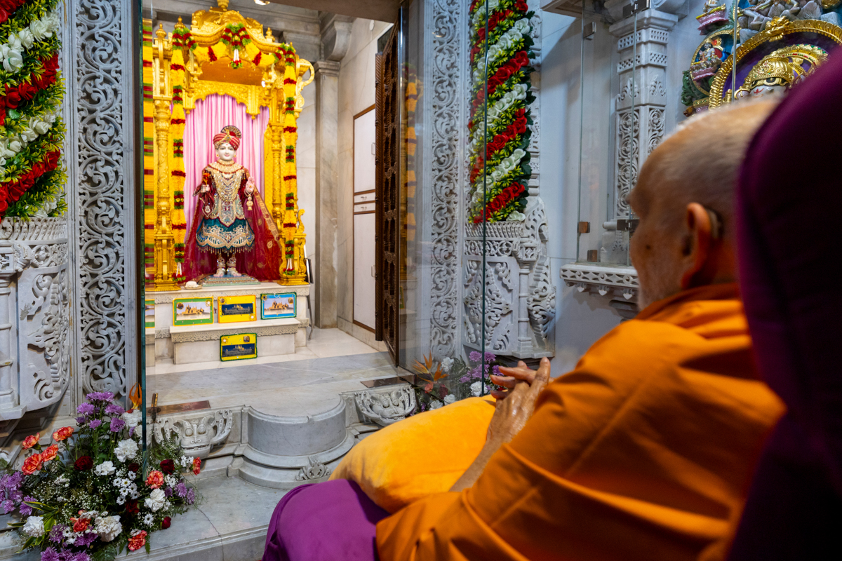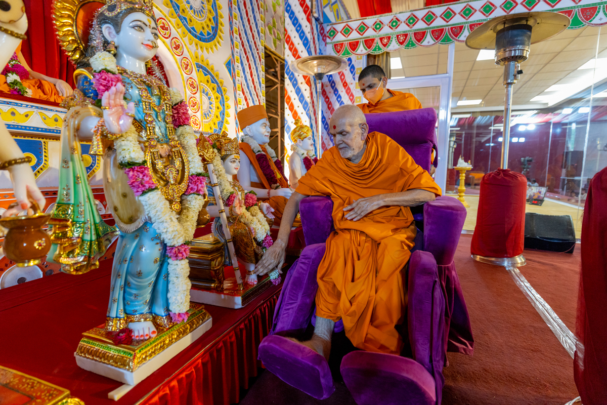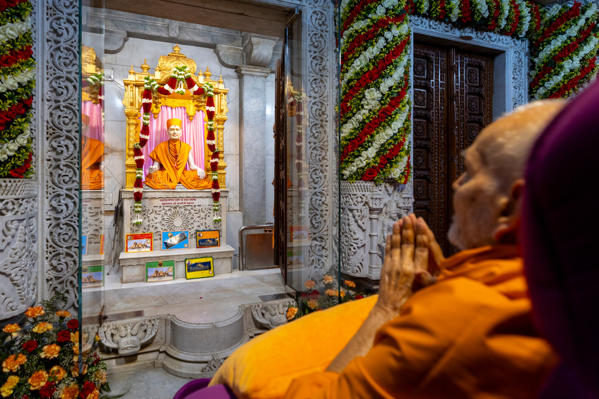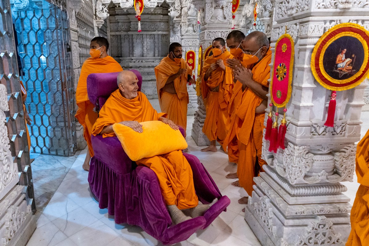Swamishri arrives for Thakorji's darshan