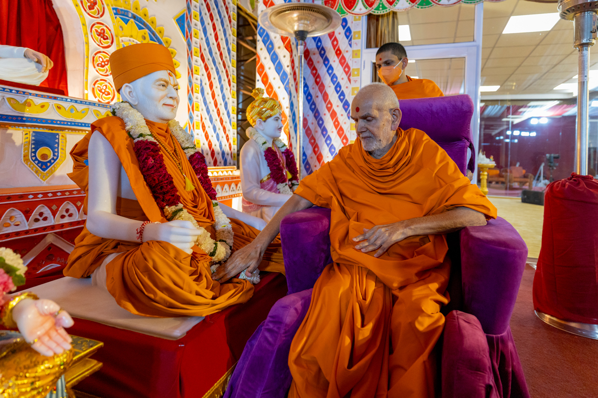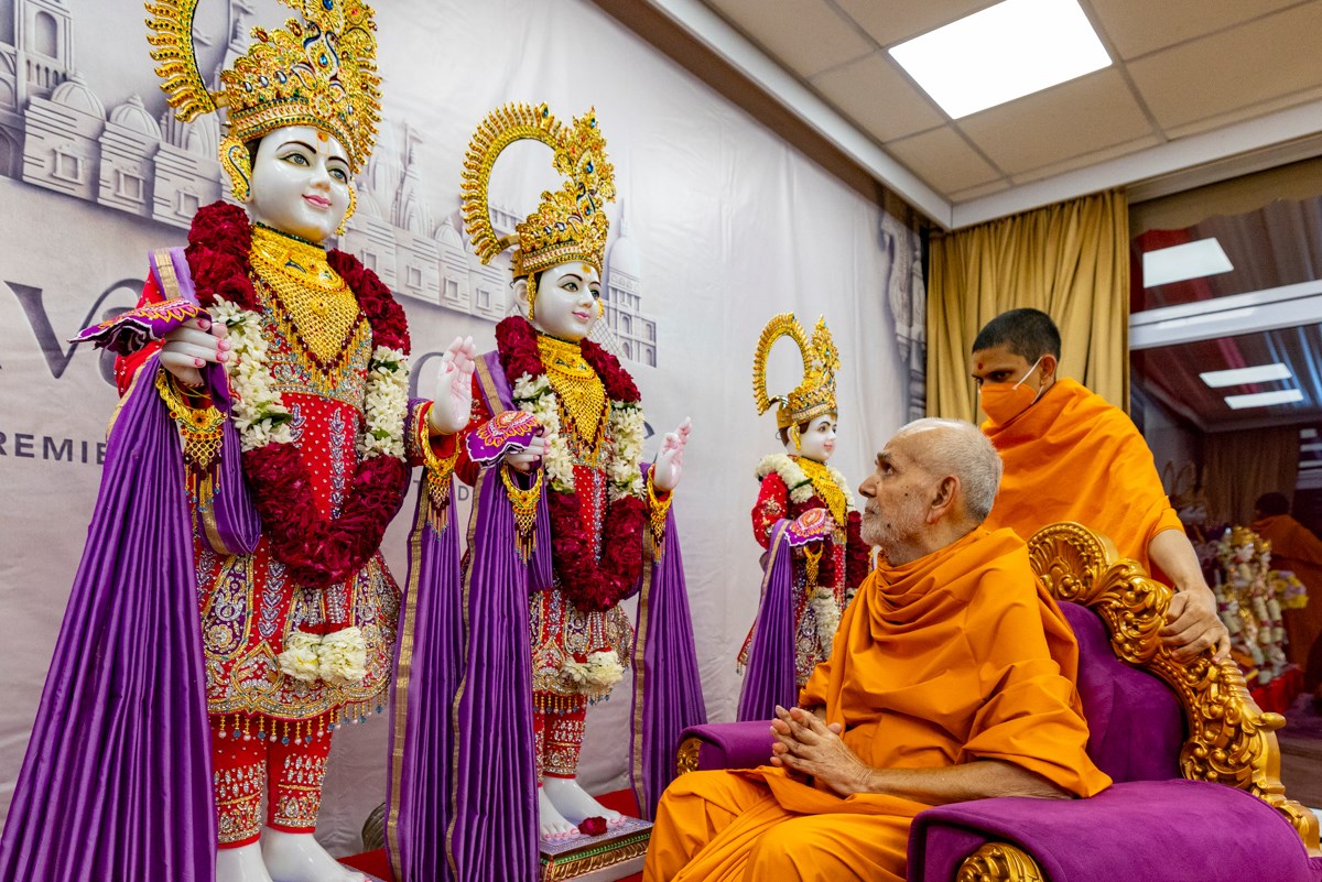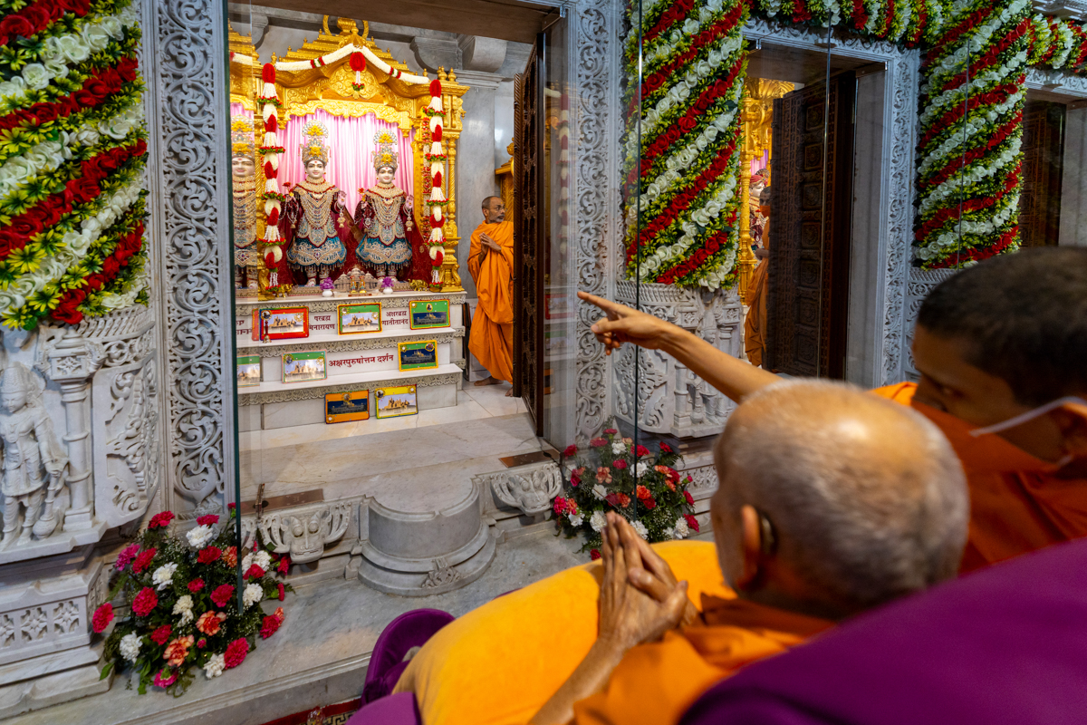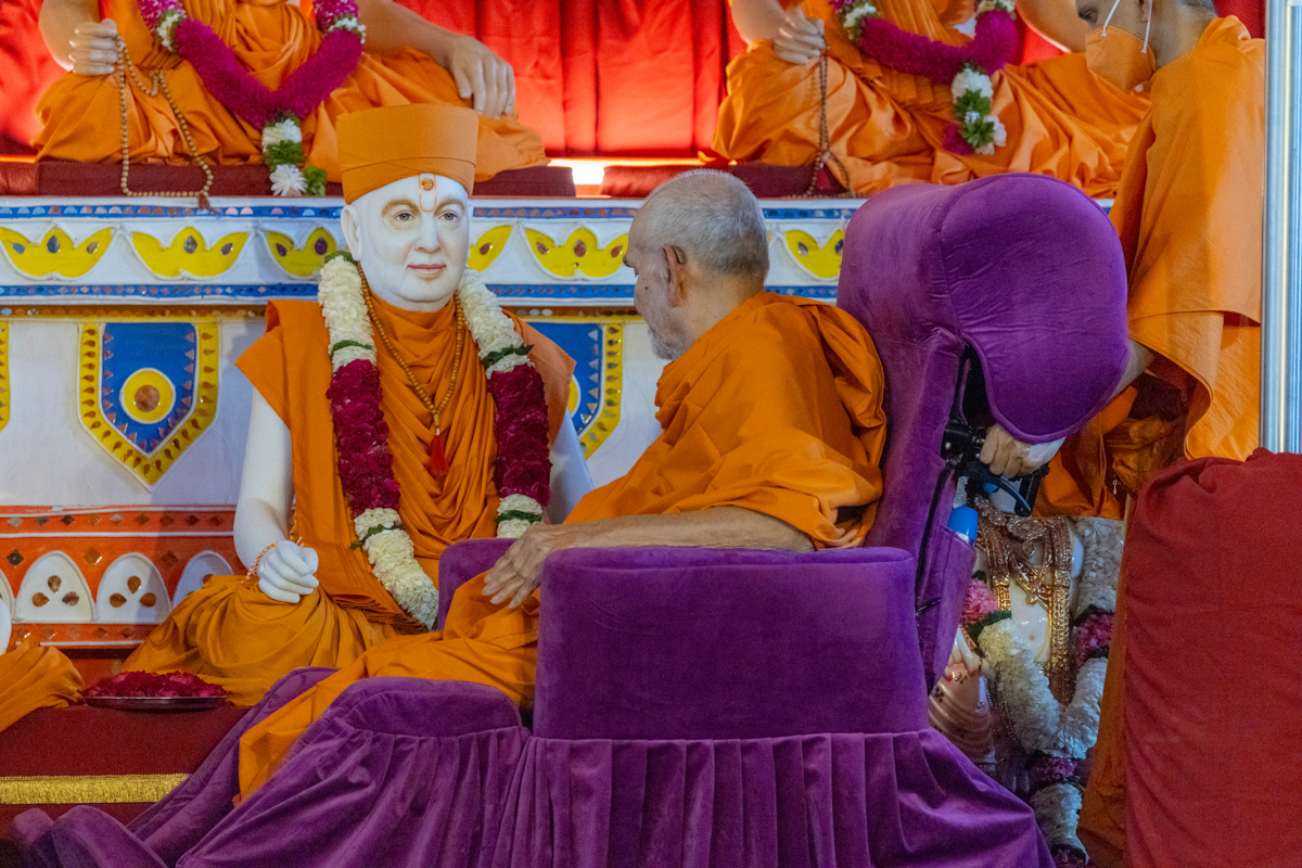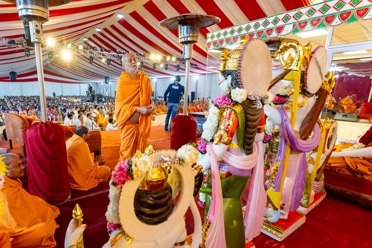 Swamishri arrives for Thakorji's darshan