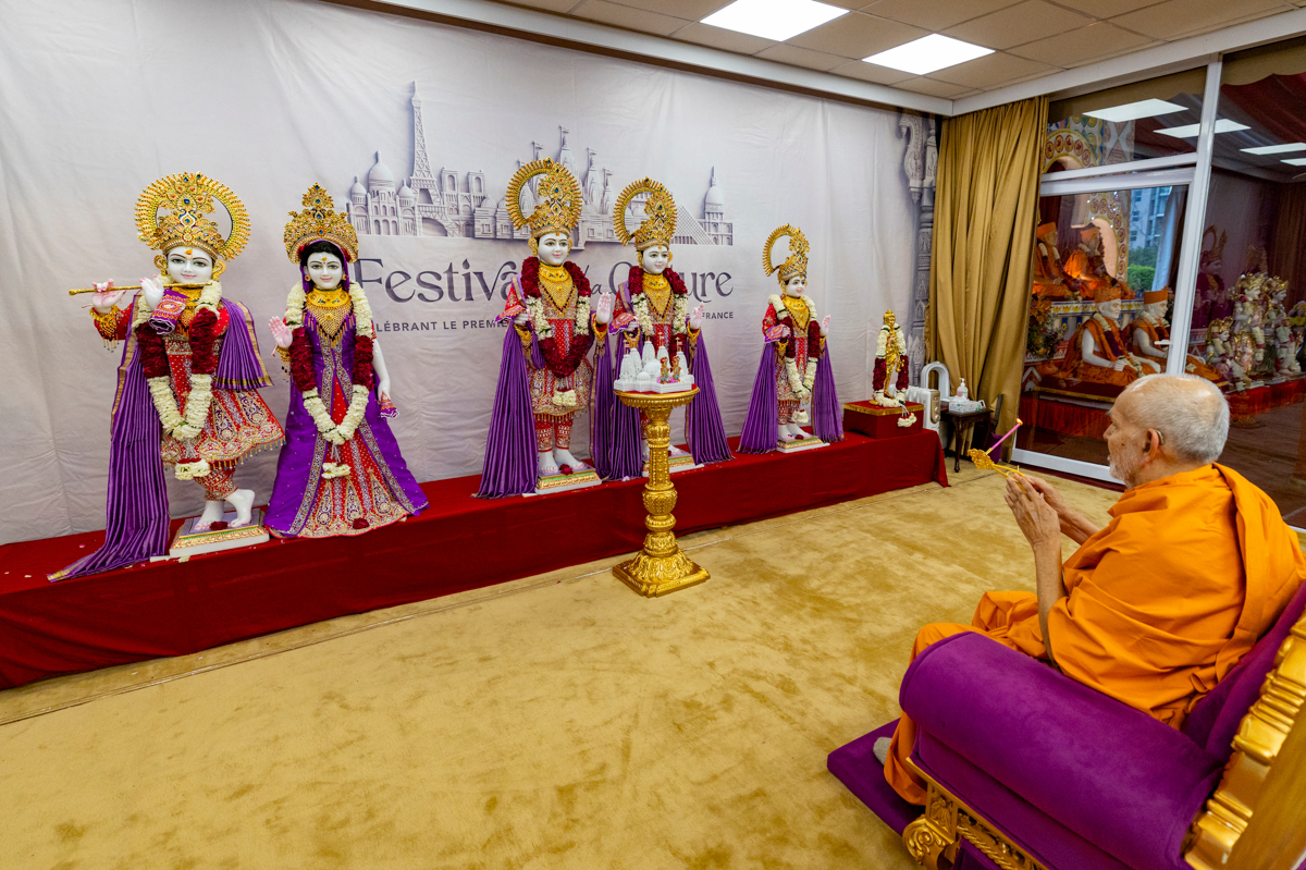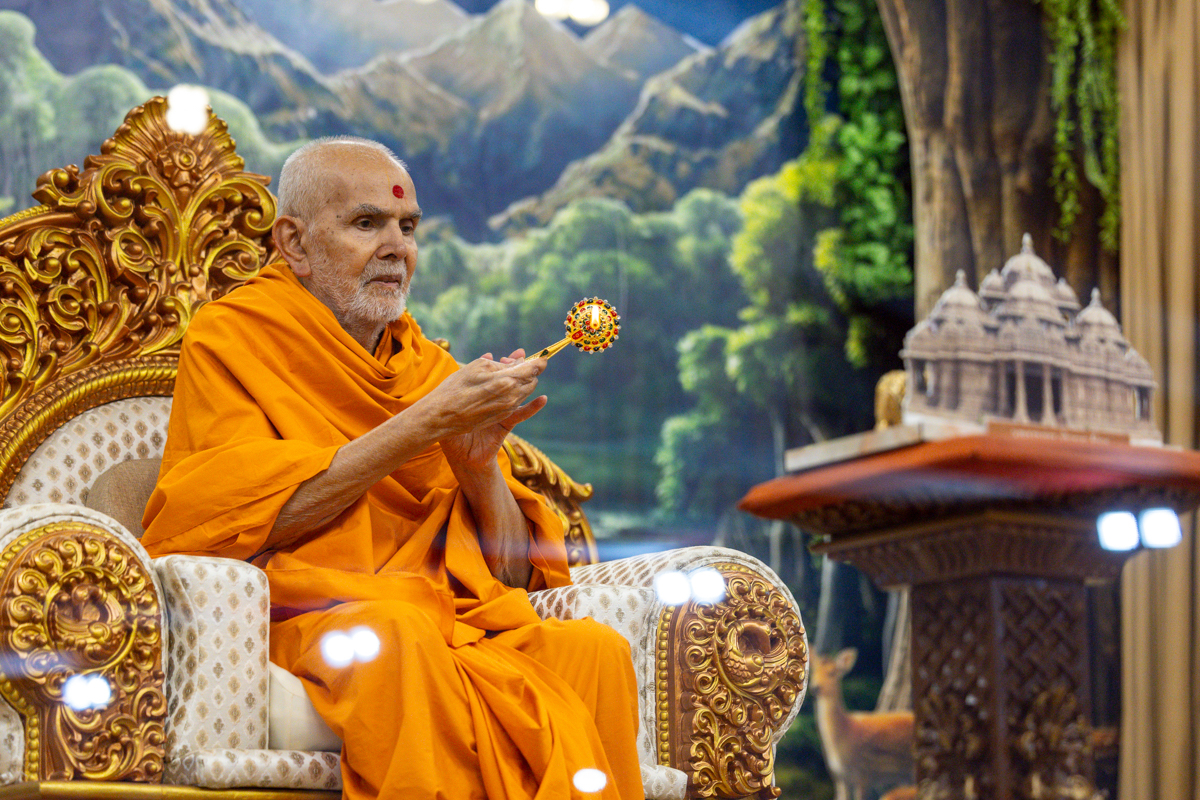 Swamishri performs the morning arti