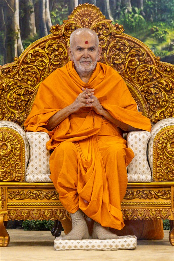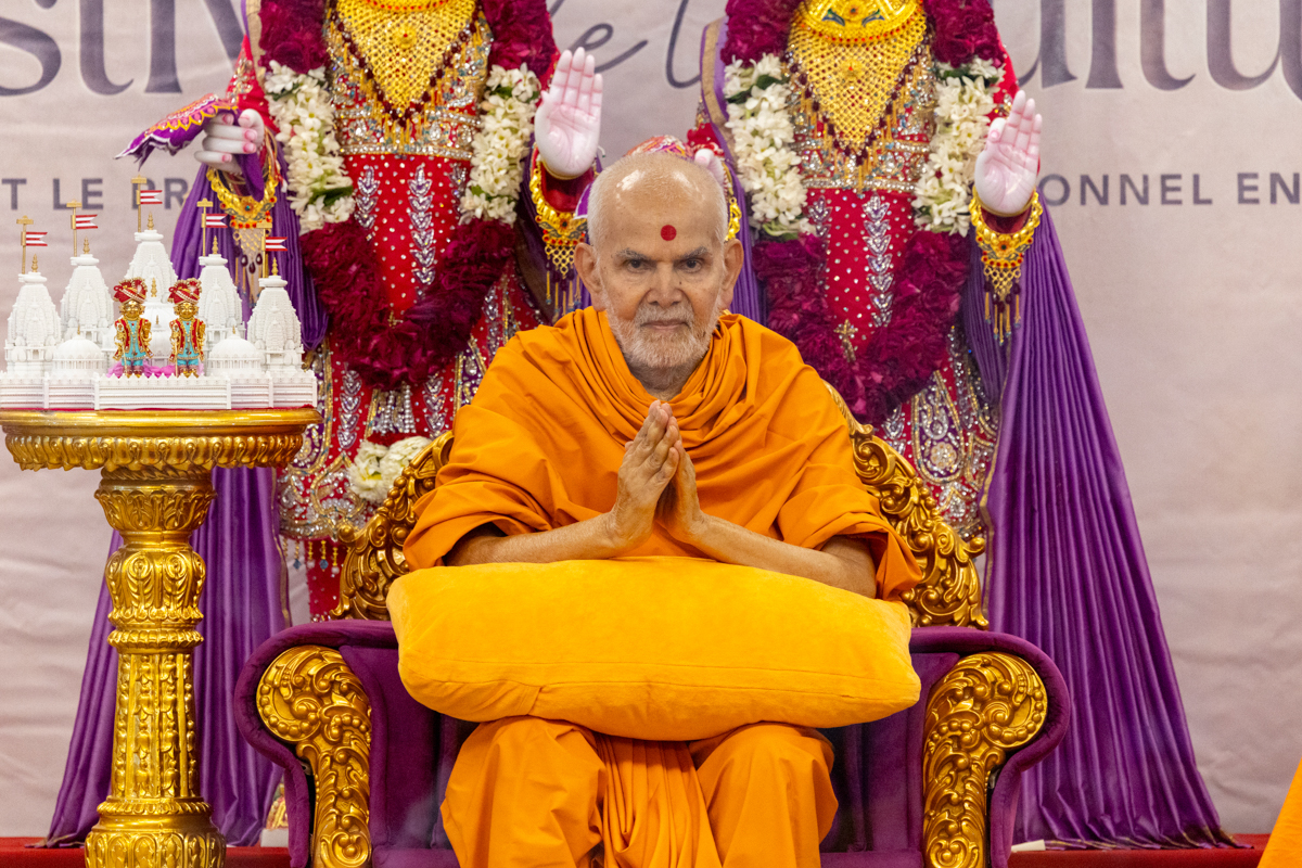 Swamishri greets all with folded hands