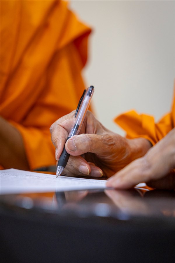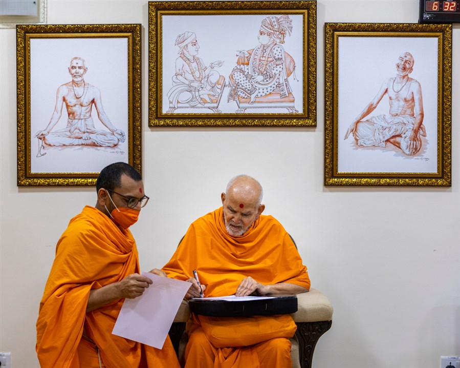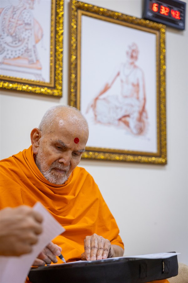 Swamishri writes a letter in the afternoon