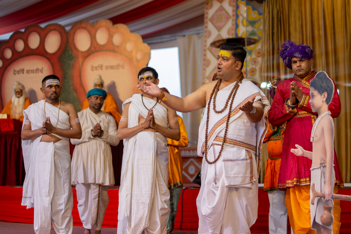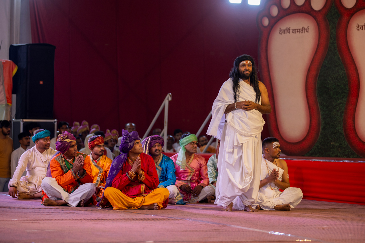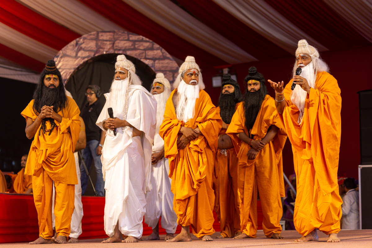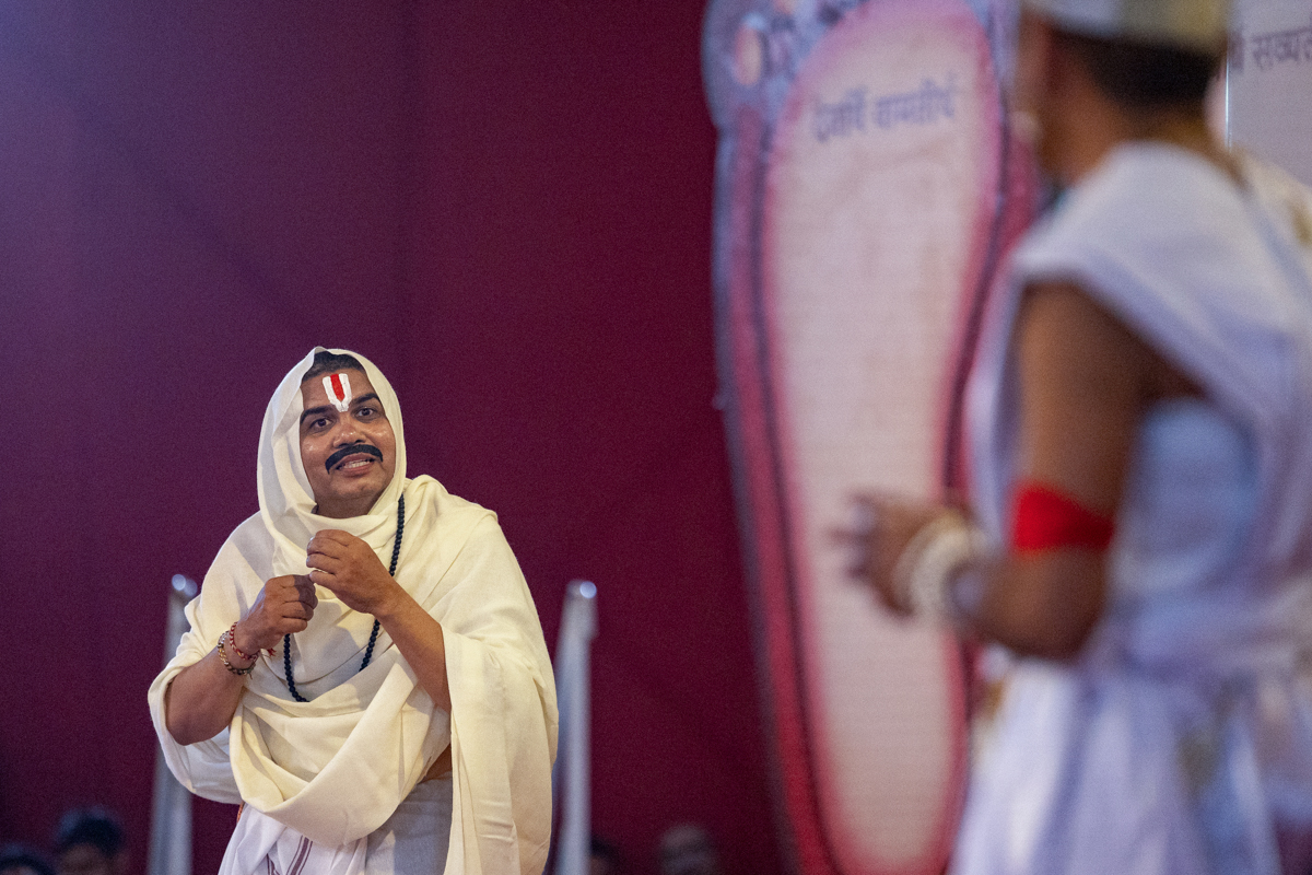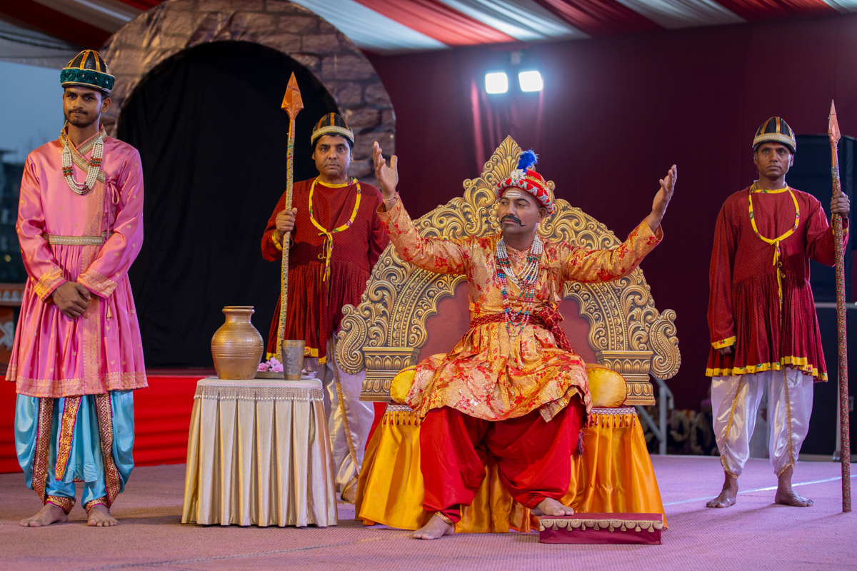 A skit presentation by yuvaks and devotees
