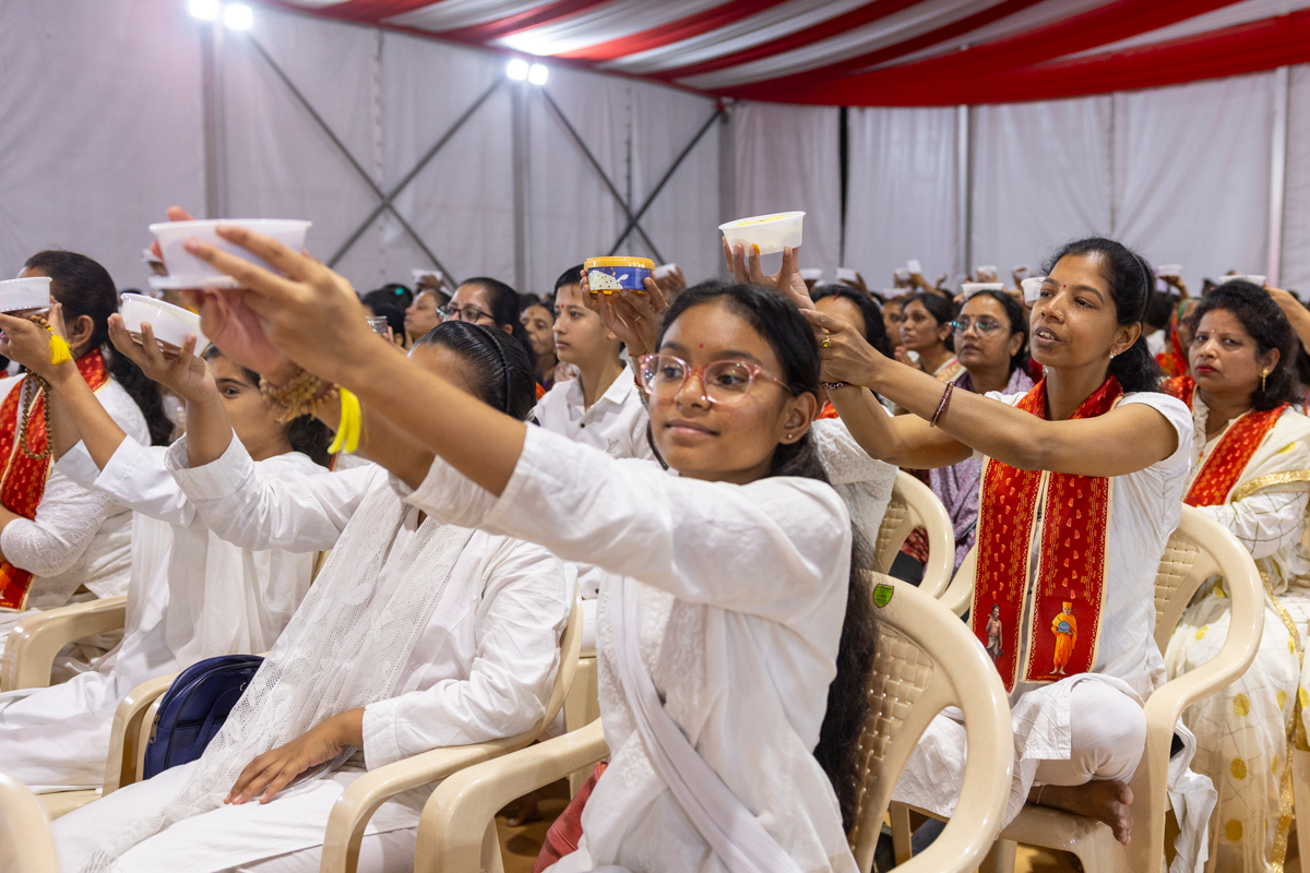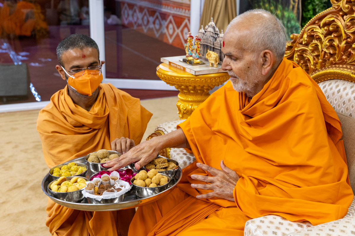 Swamishri sanctifies homemade delicacies from devotees
