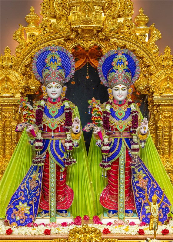 Bhagwan Swaminarayan and Aksharbrahma Gunatitanand Swami Maharaj, BAPS Shri Swaminarayan Prarthana Mandir, Kanad, Surat