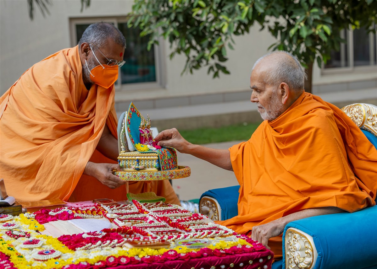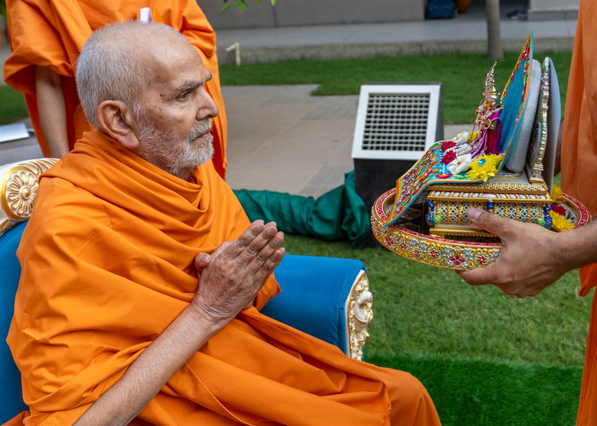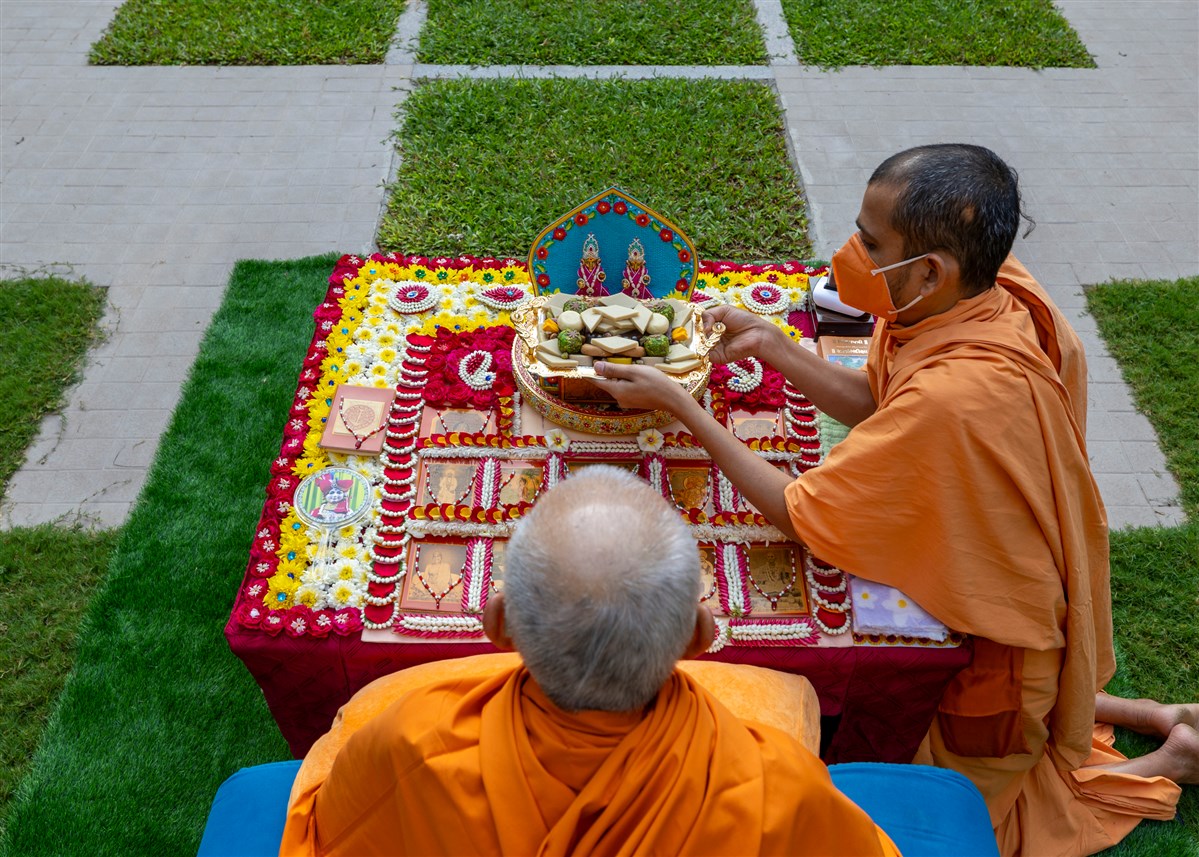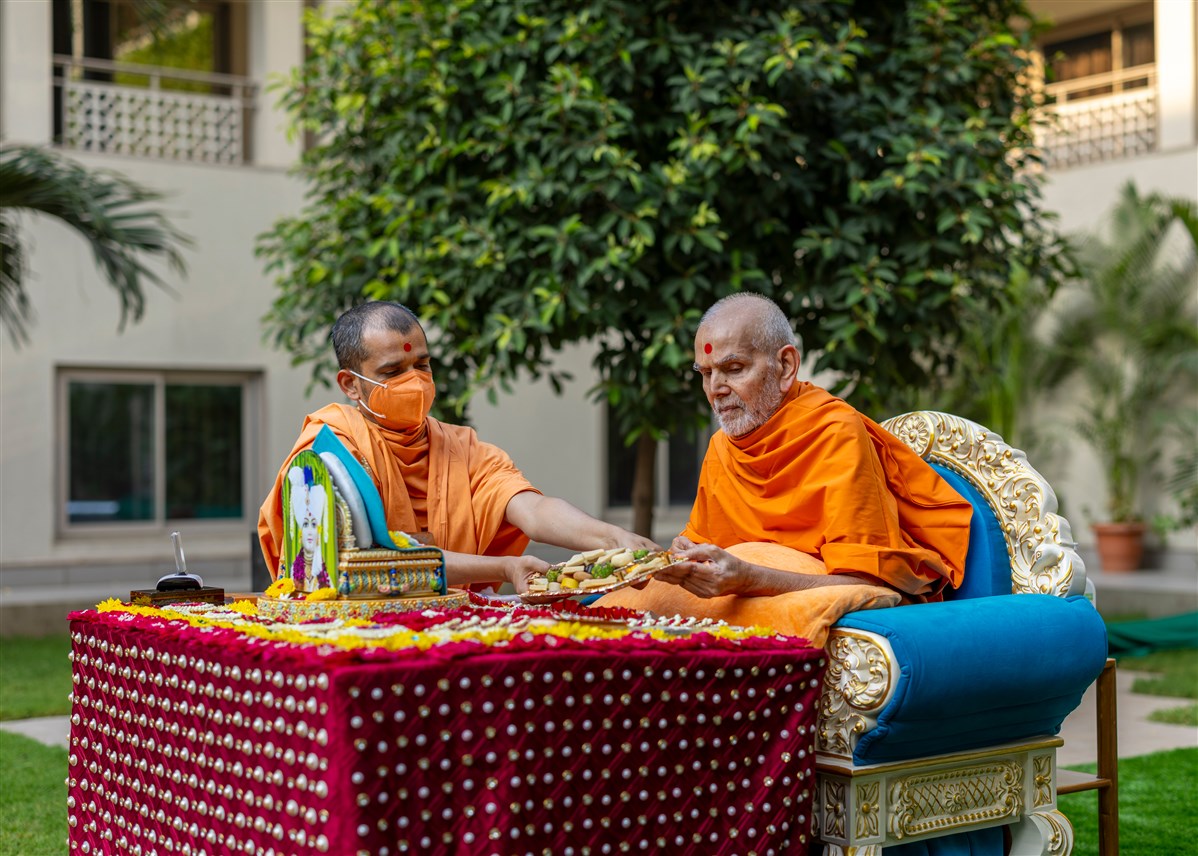 Swamishri offers thal to Thakorji