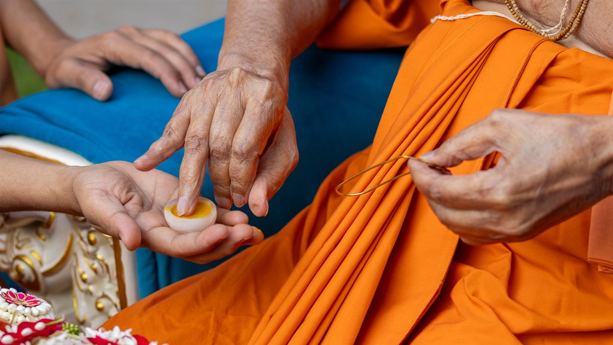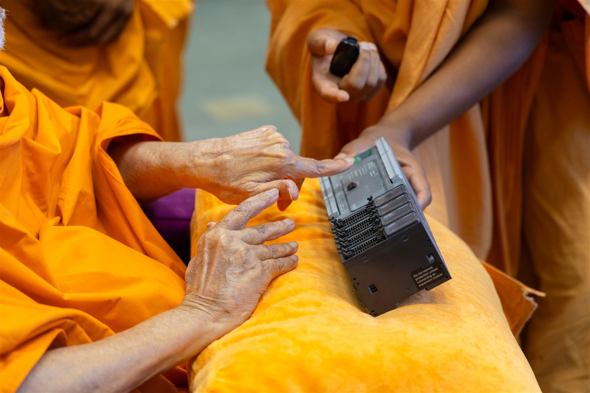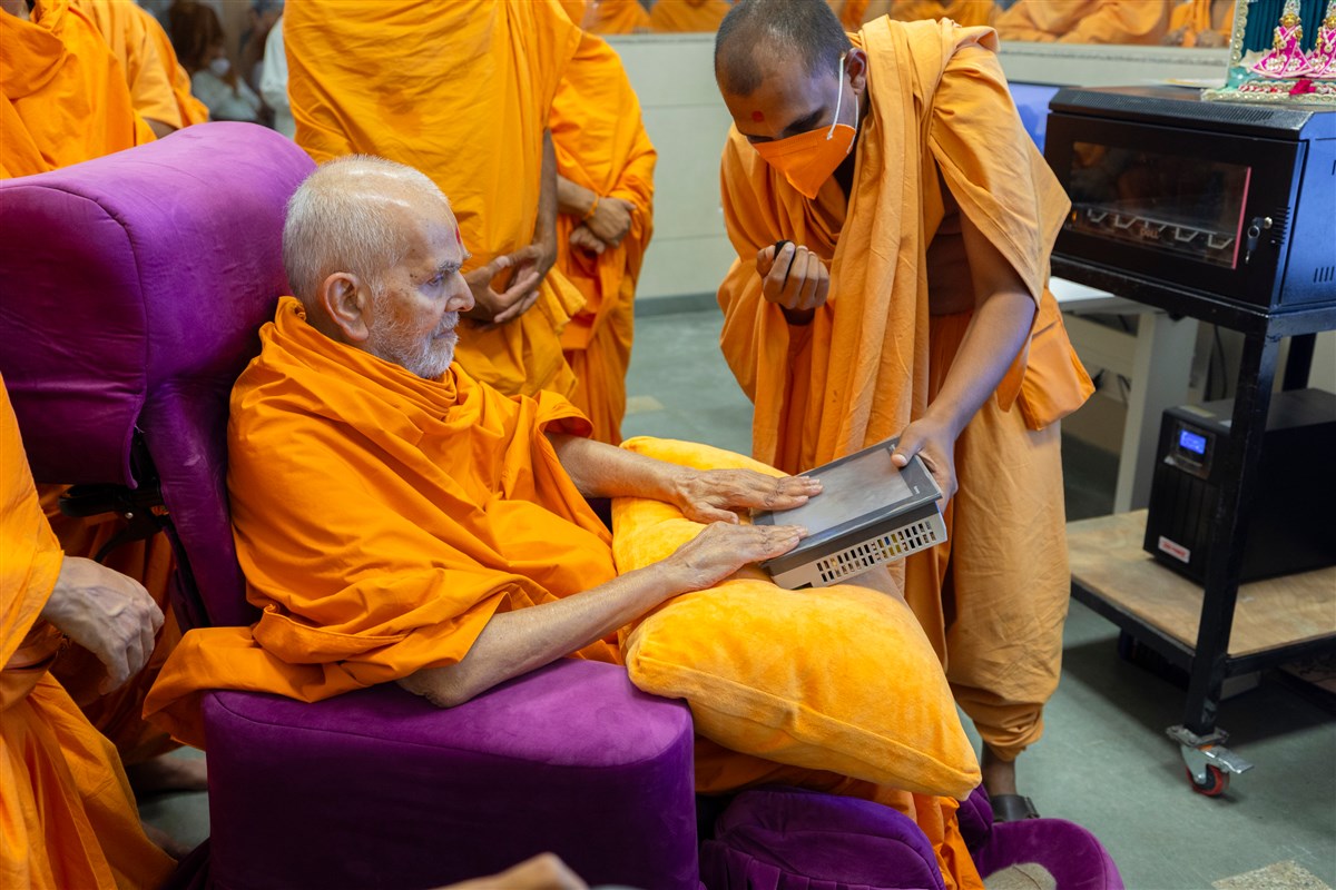 Swamishri sanctifies a server