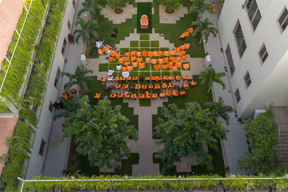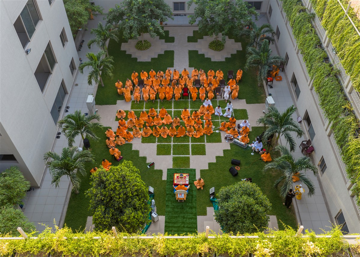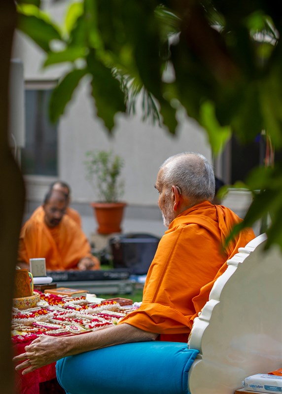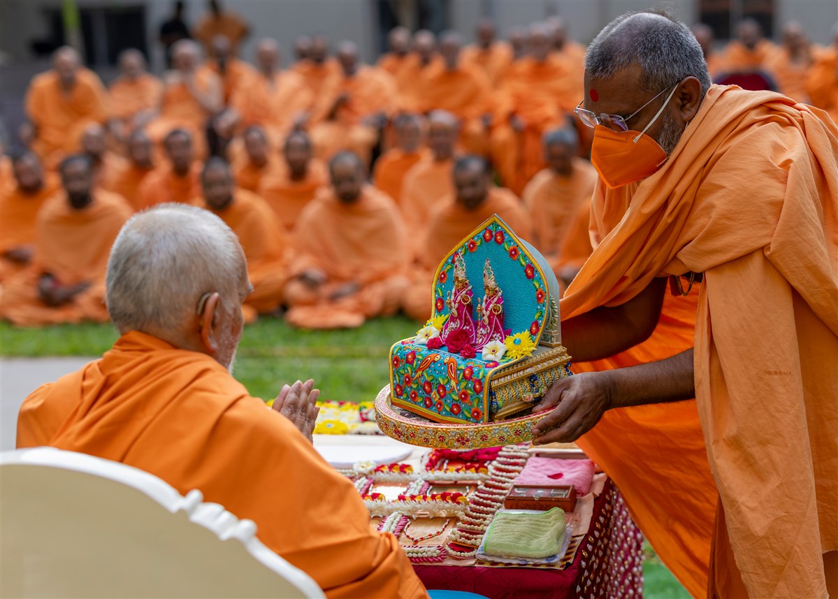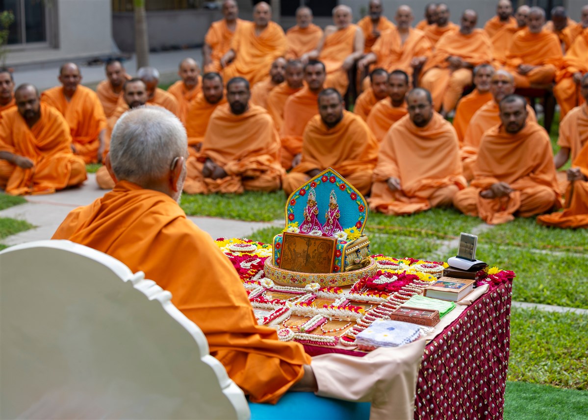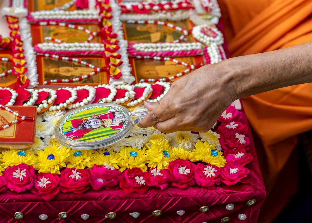 Swamis doing Swamishri's puja darshan