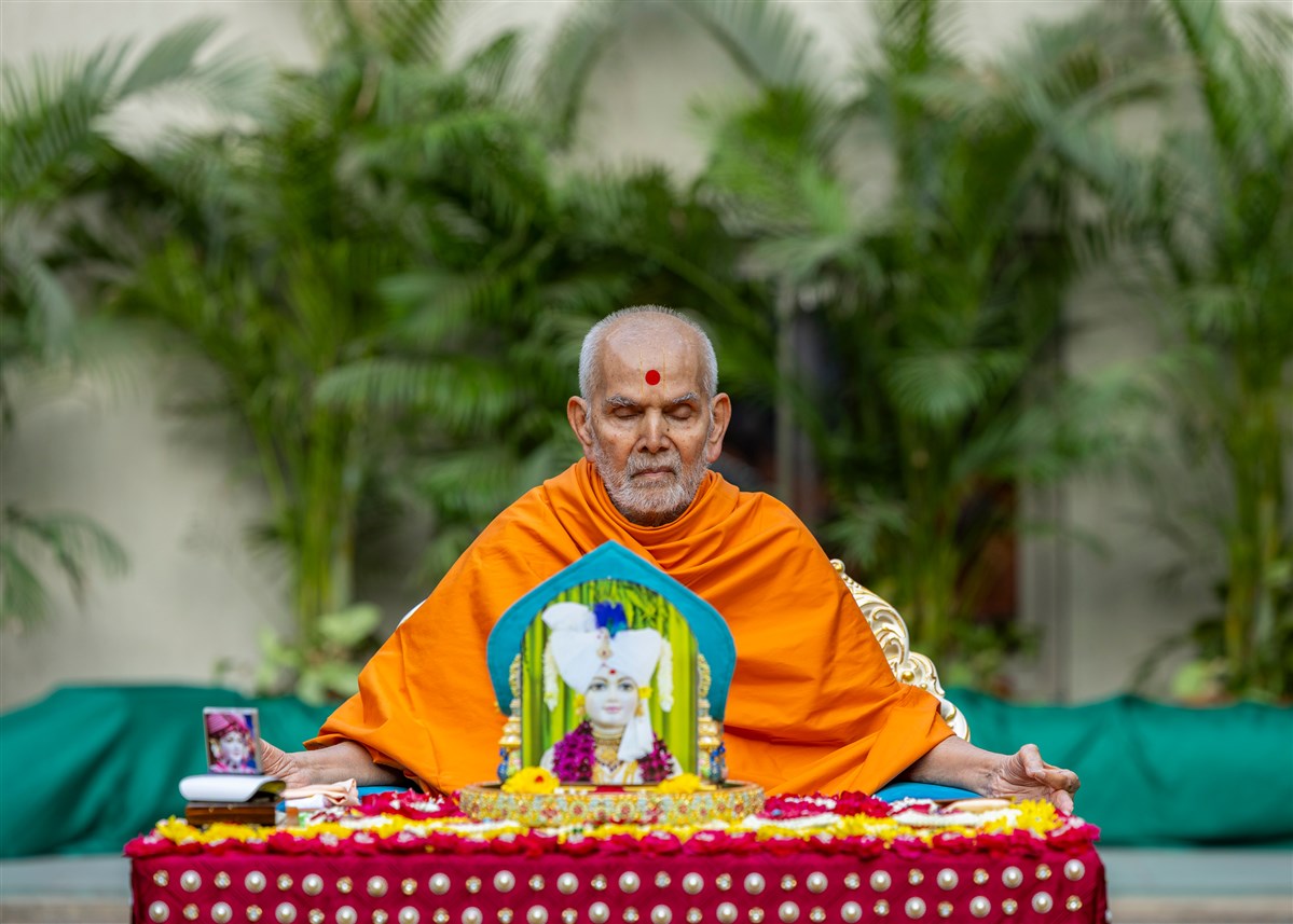 Swamishri meditates in his daily puja