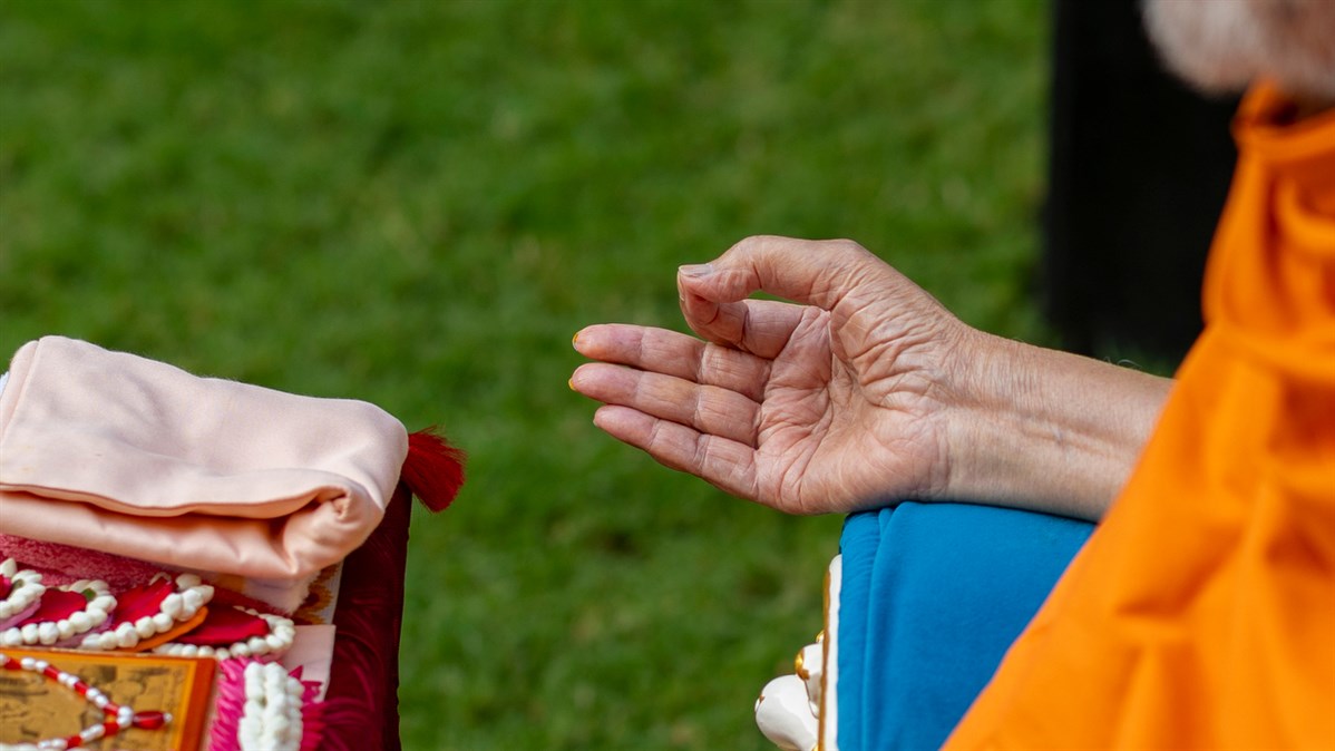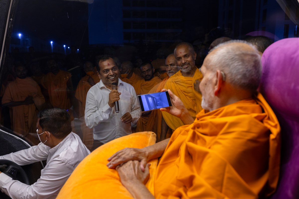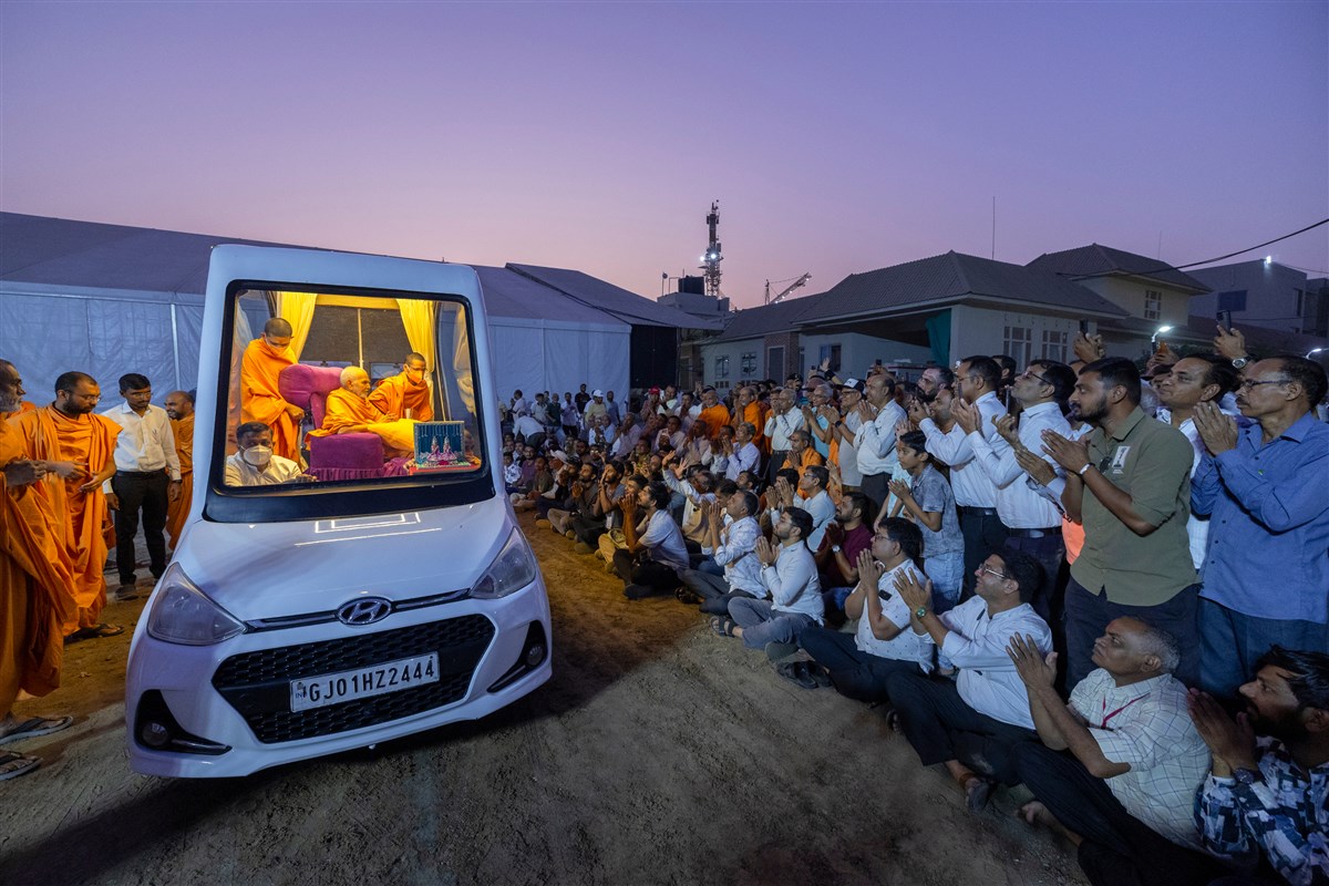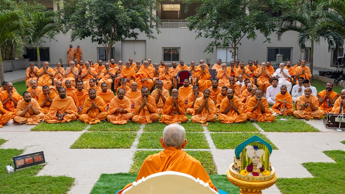 Swamishri greets all with folded hands