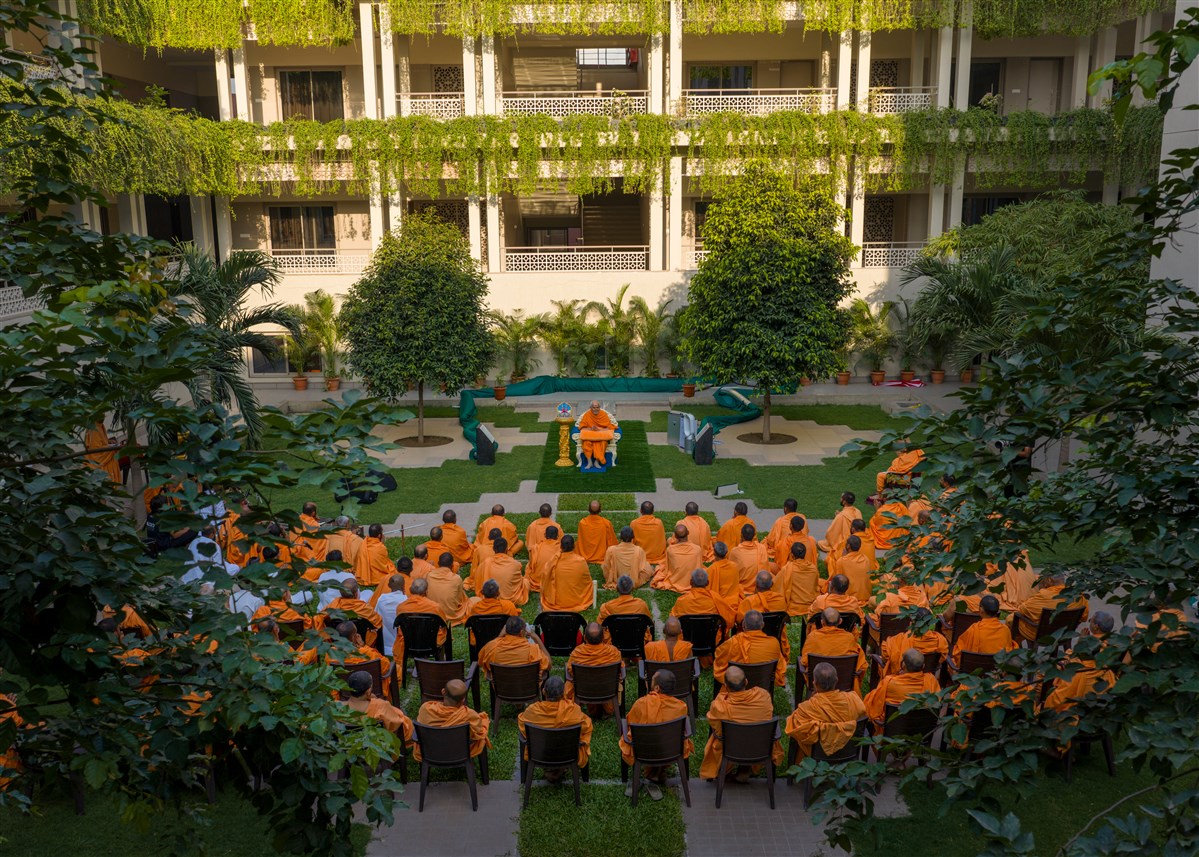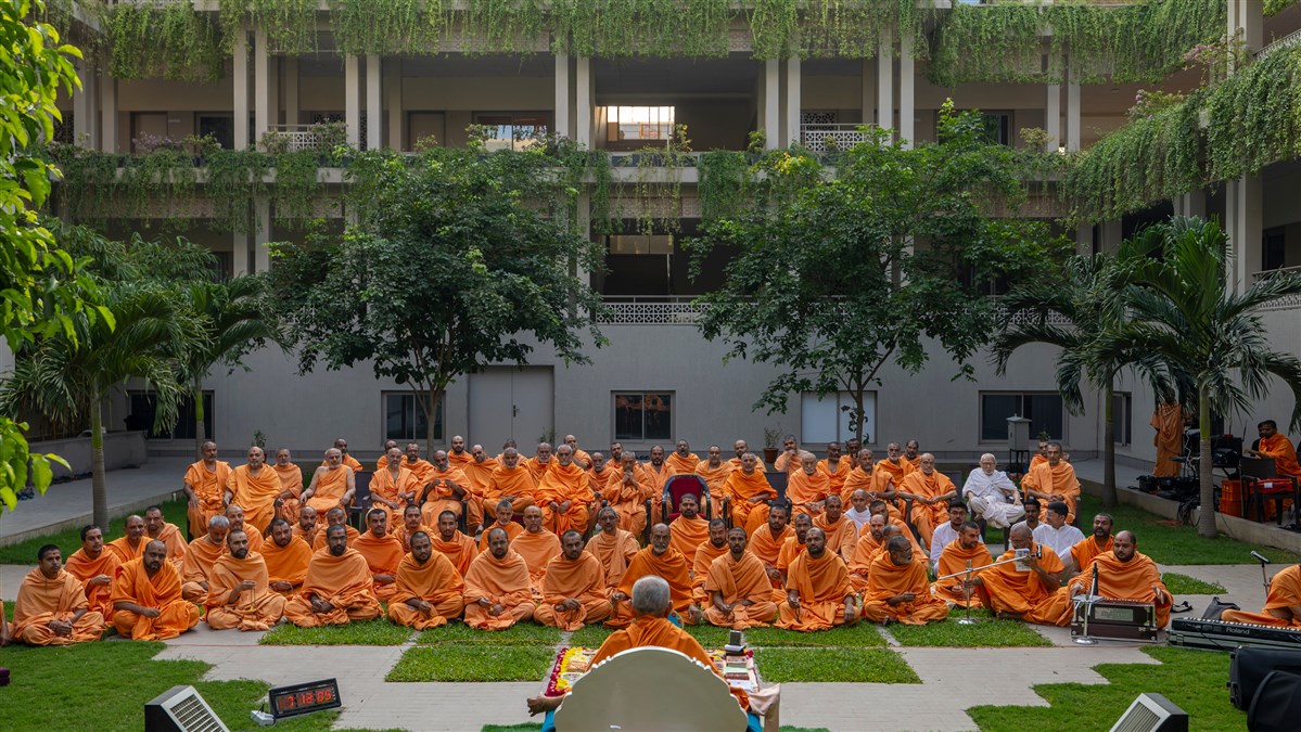 Swamishri observes a panel