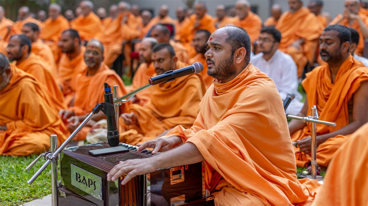 Gurudarshan Swami sings a kirtan in Swamishri's daily puja
