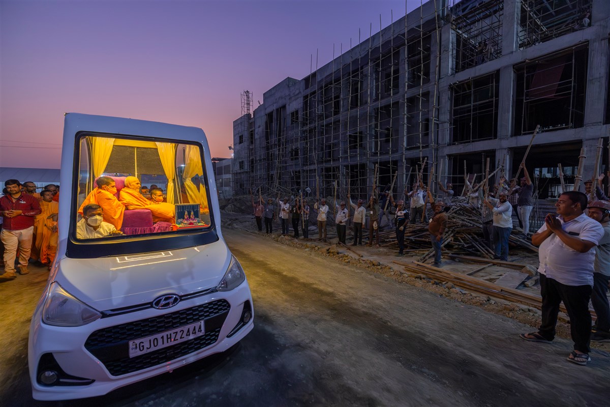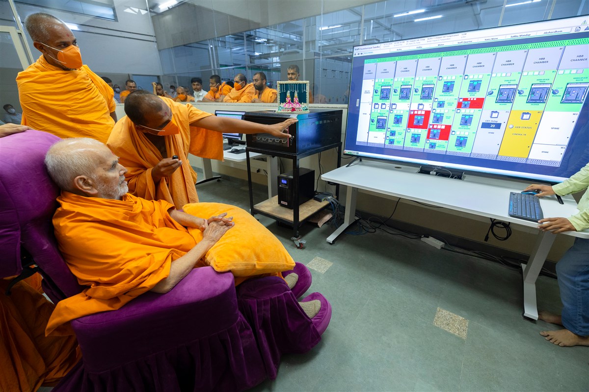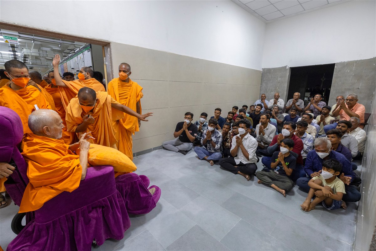 Swamishri visits the utility center