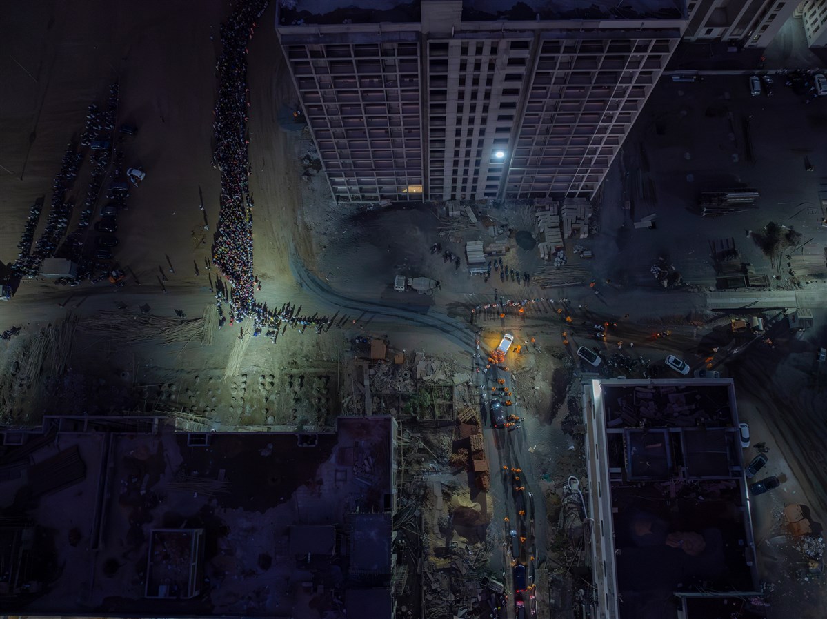 Volunteers doing darshan of Swamishri