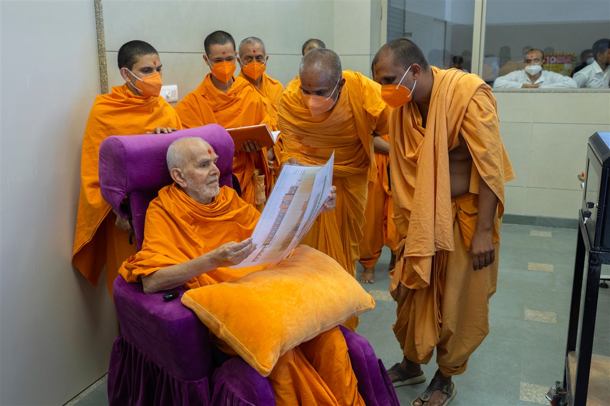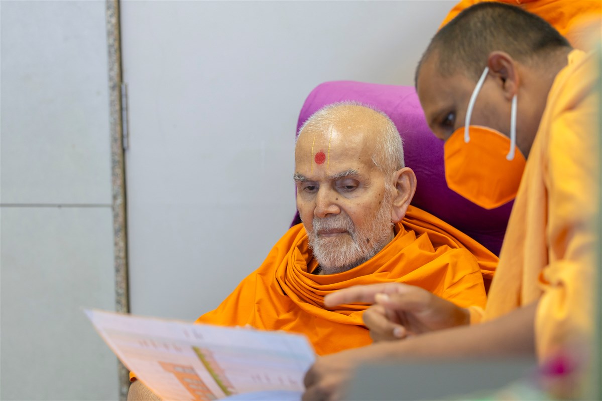 Swamishri listens attentively to details presented to him
