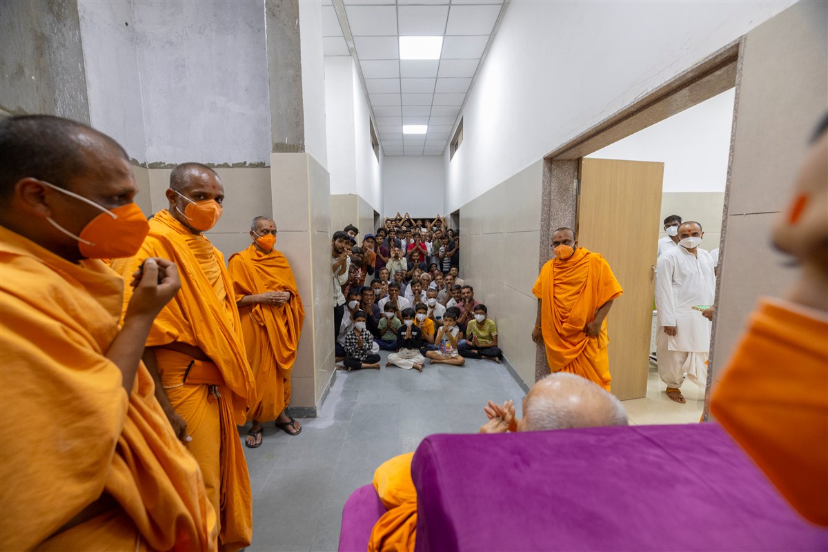 Swamishri visits utility room