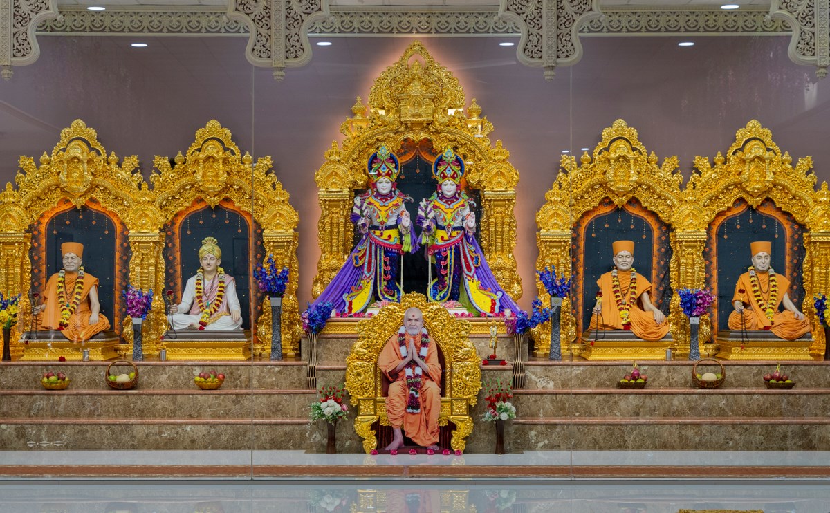 Swamishri offers thal to Shri Akshar-Purushottam Maharaj