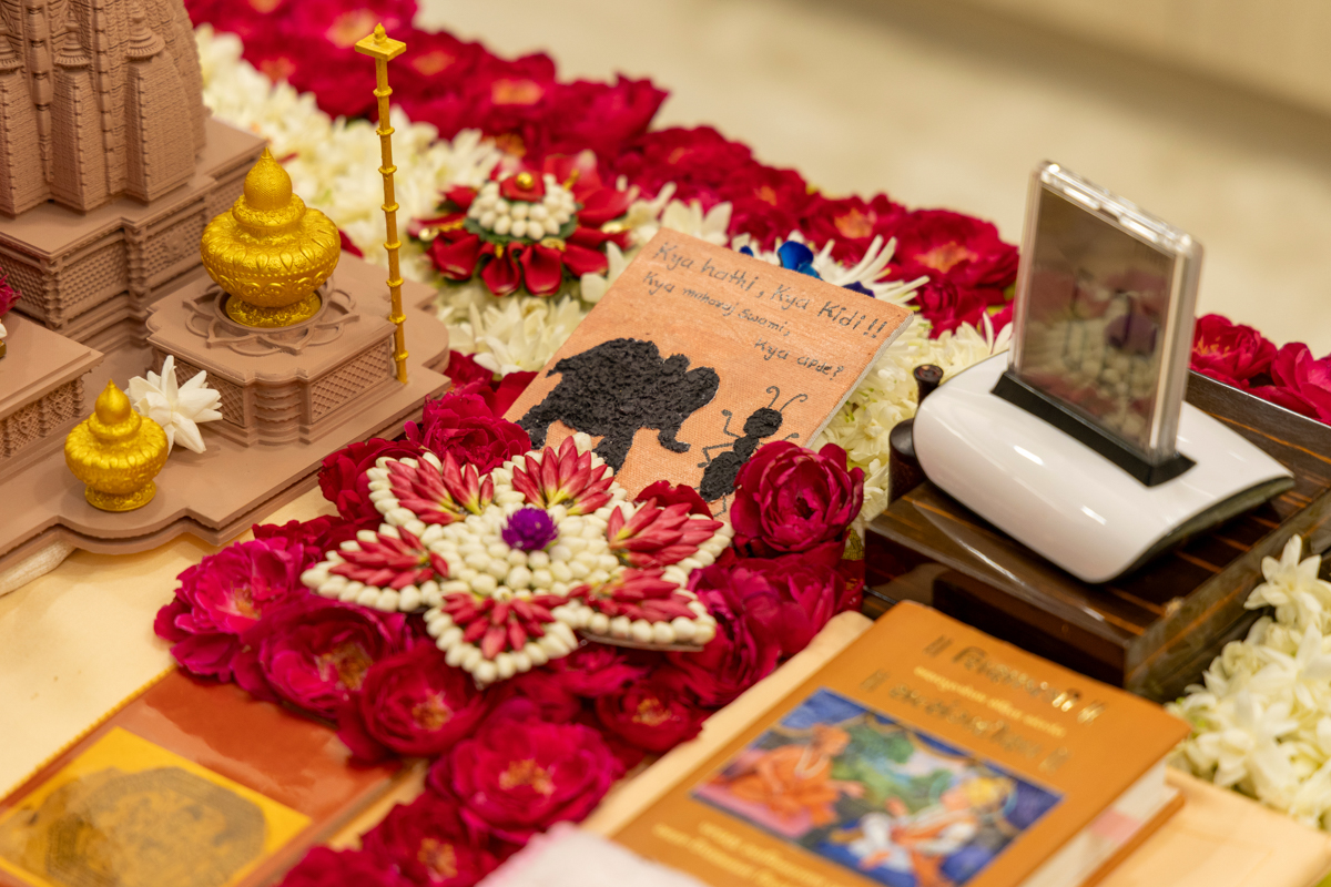 Decoration in Swamishri's daily puja