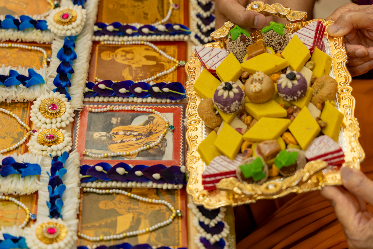 Swamishri offers thal to Brahmaswarup Pramukh Swami Maharaj
