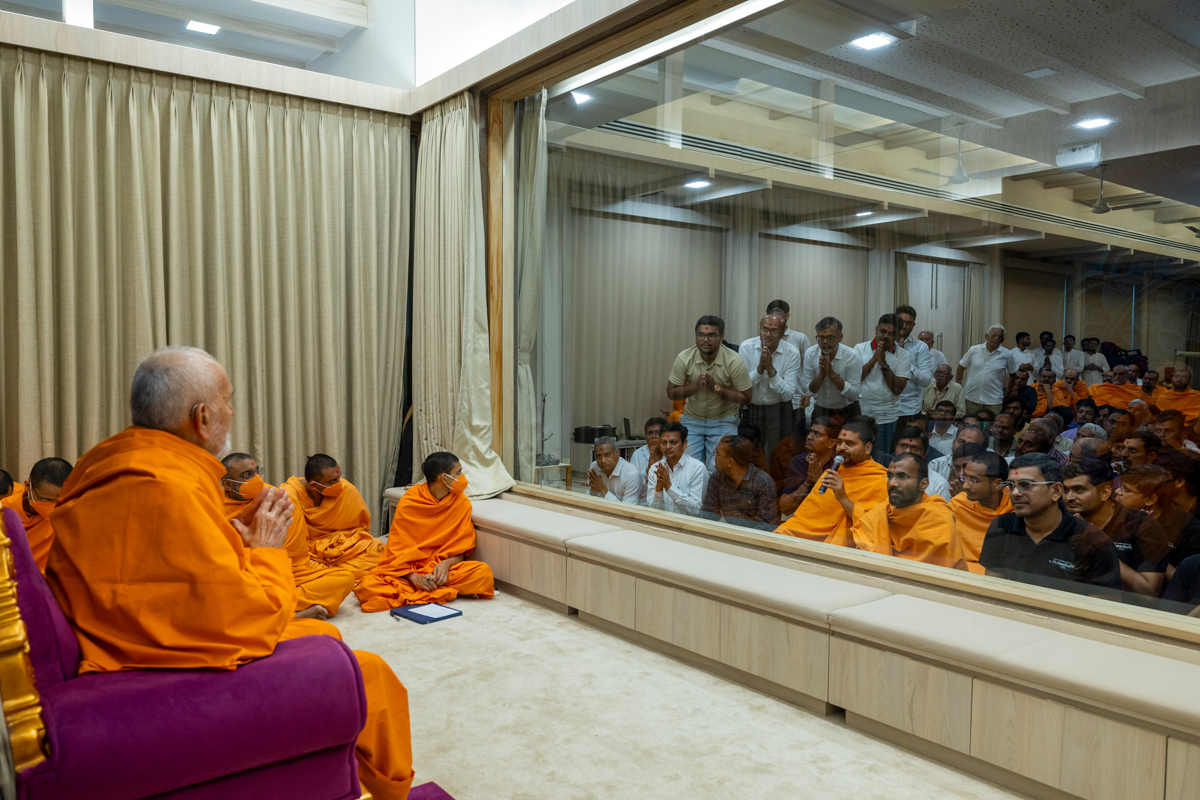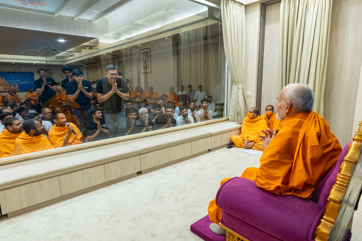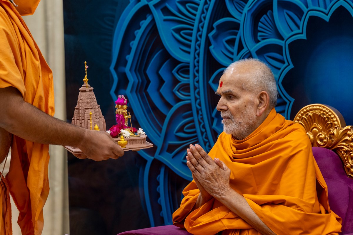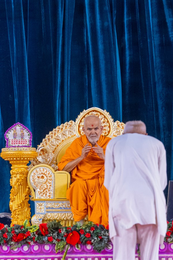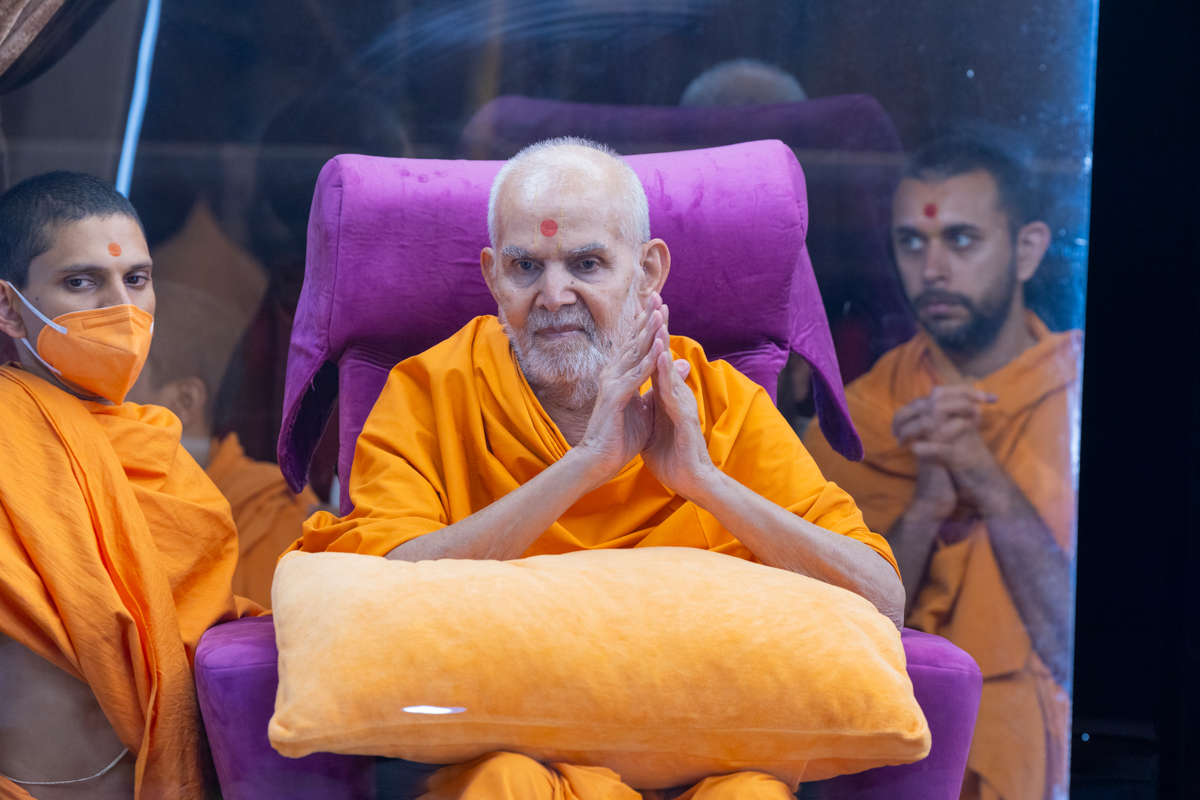 Swamishri greets all with folded hands