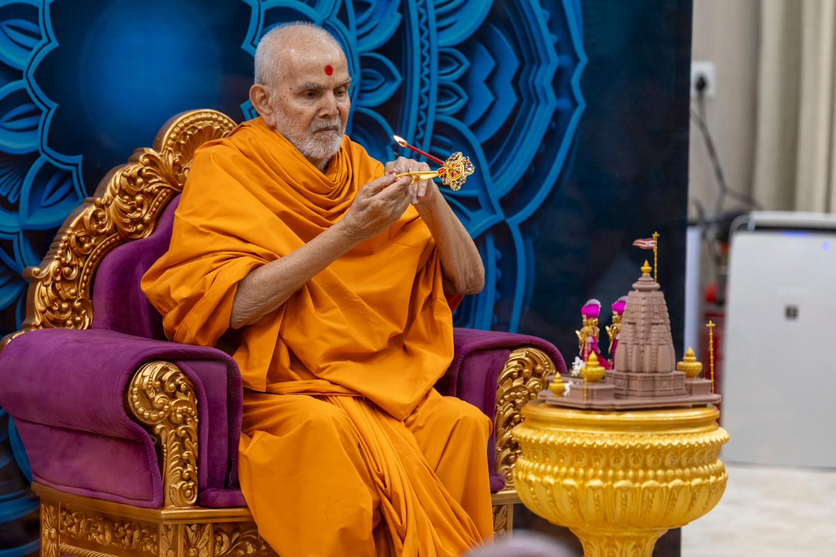 Swamishri performs the morning arti