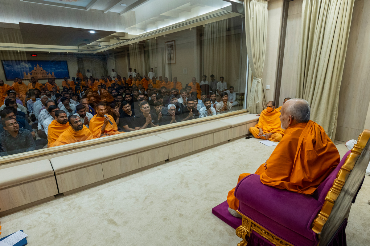 Swamishri listens attentively