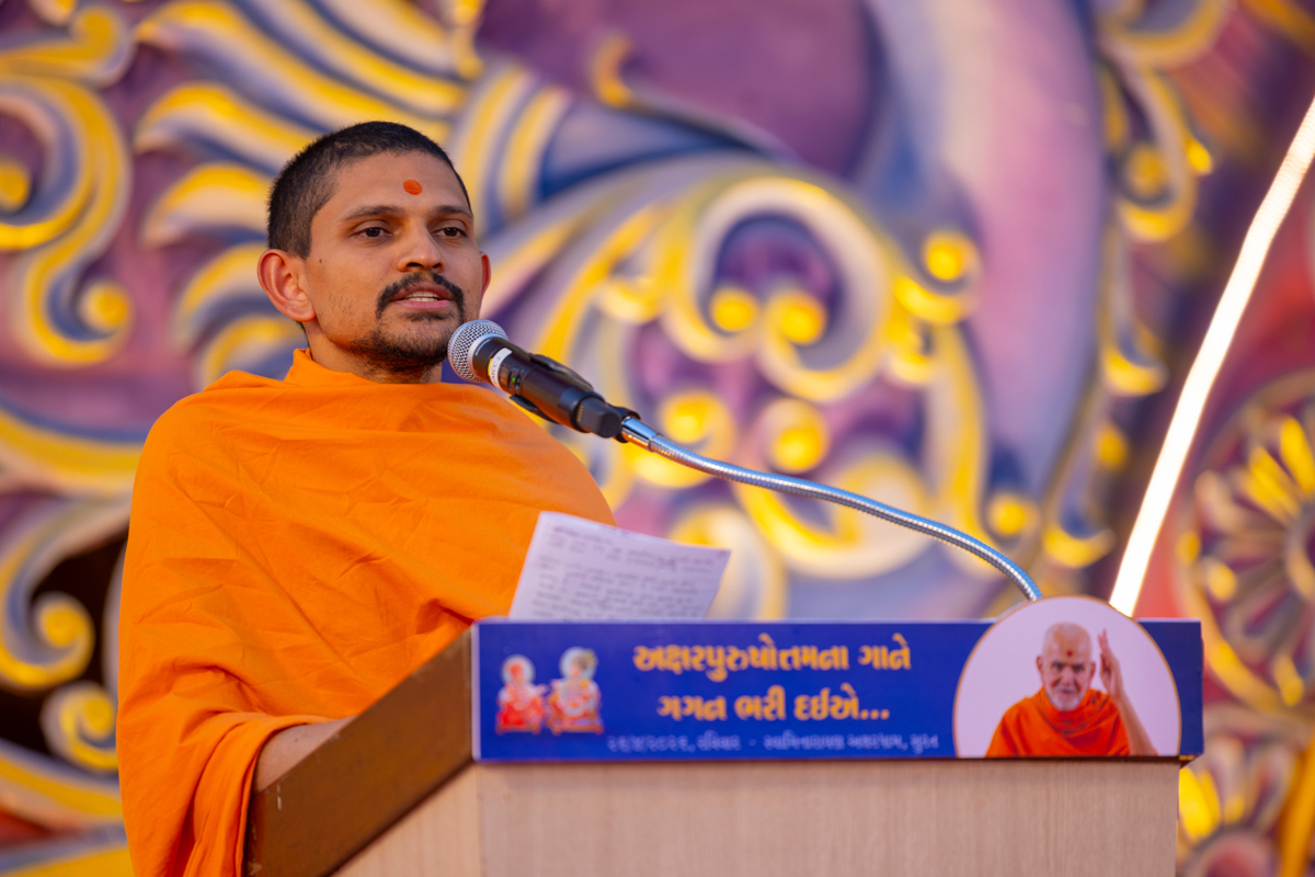 Adarshajivan Swami addresses the assembly