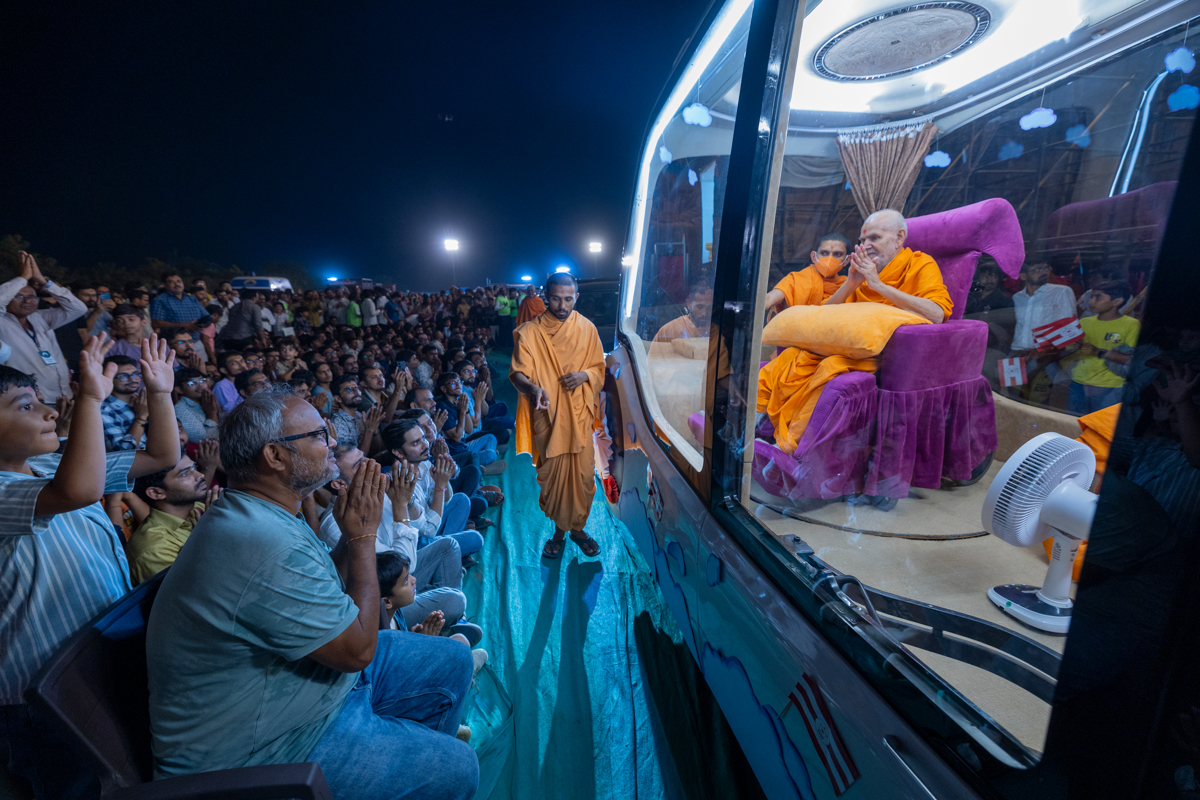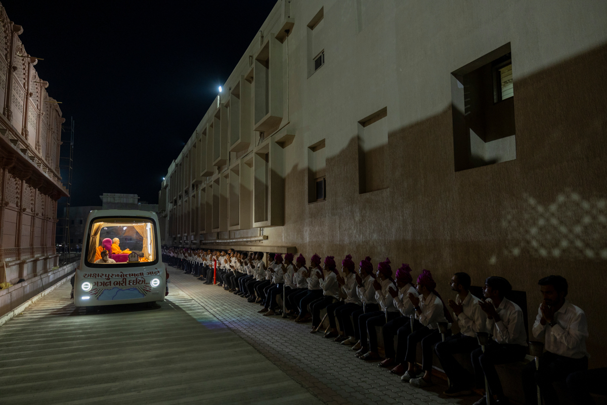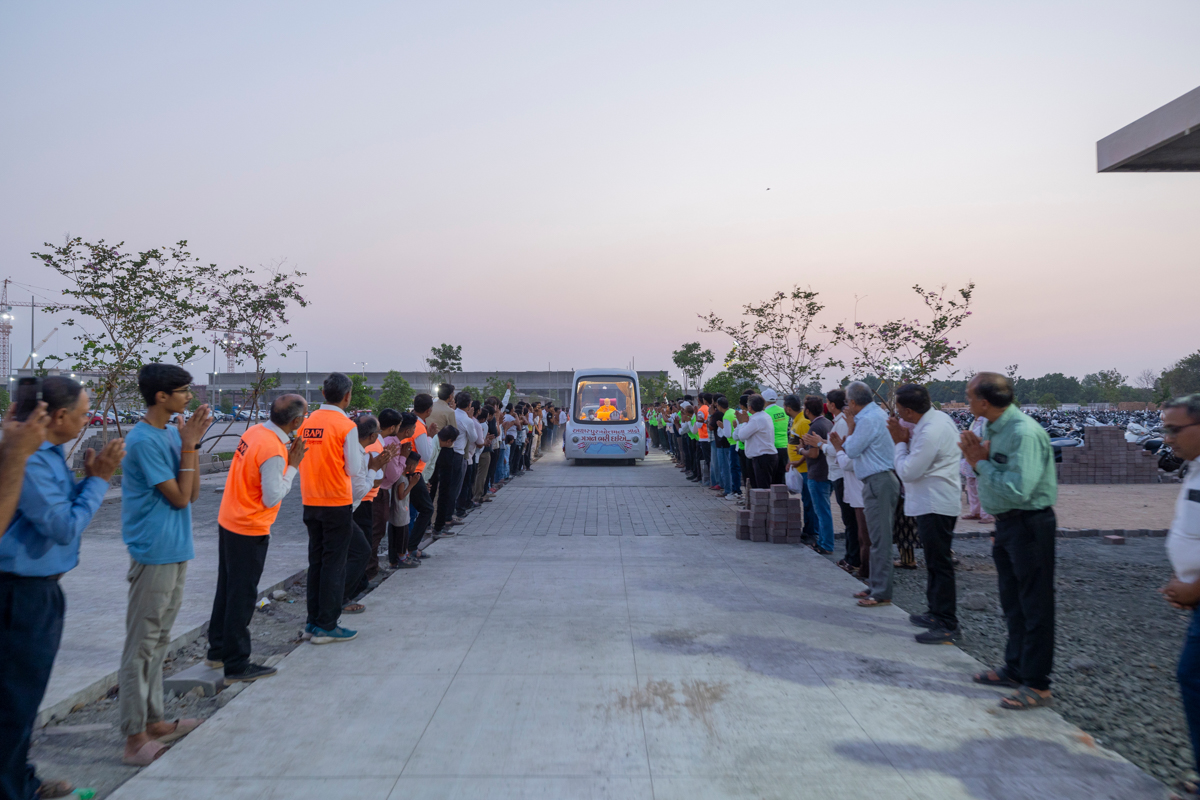 Swamishri on his way to the assembly