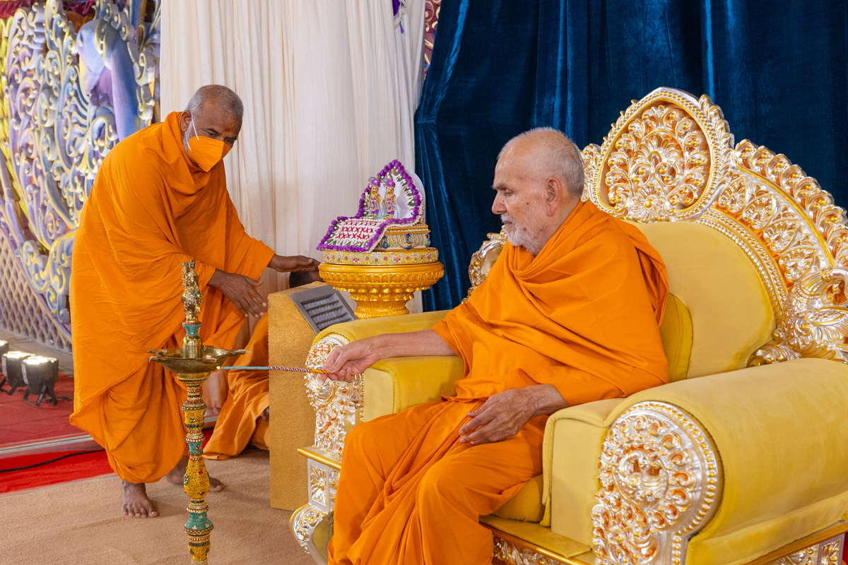 Swamishri lights the lamp