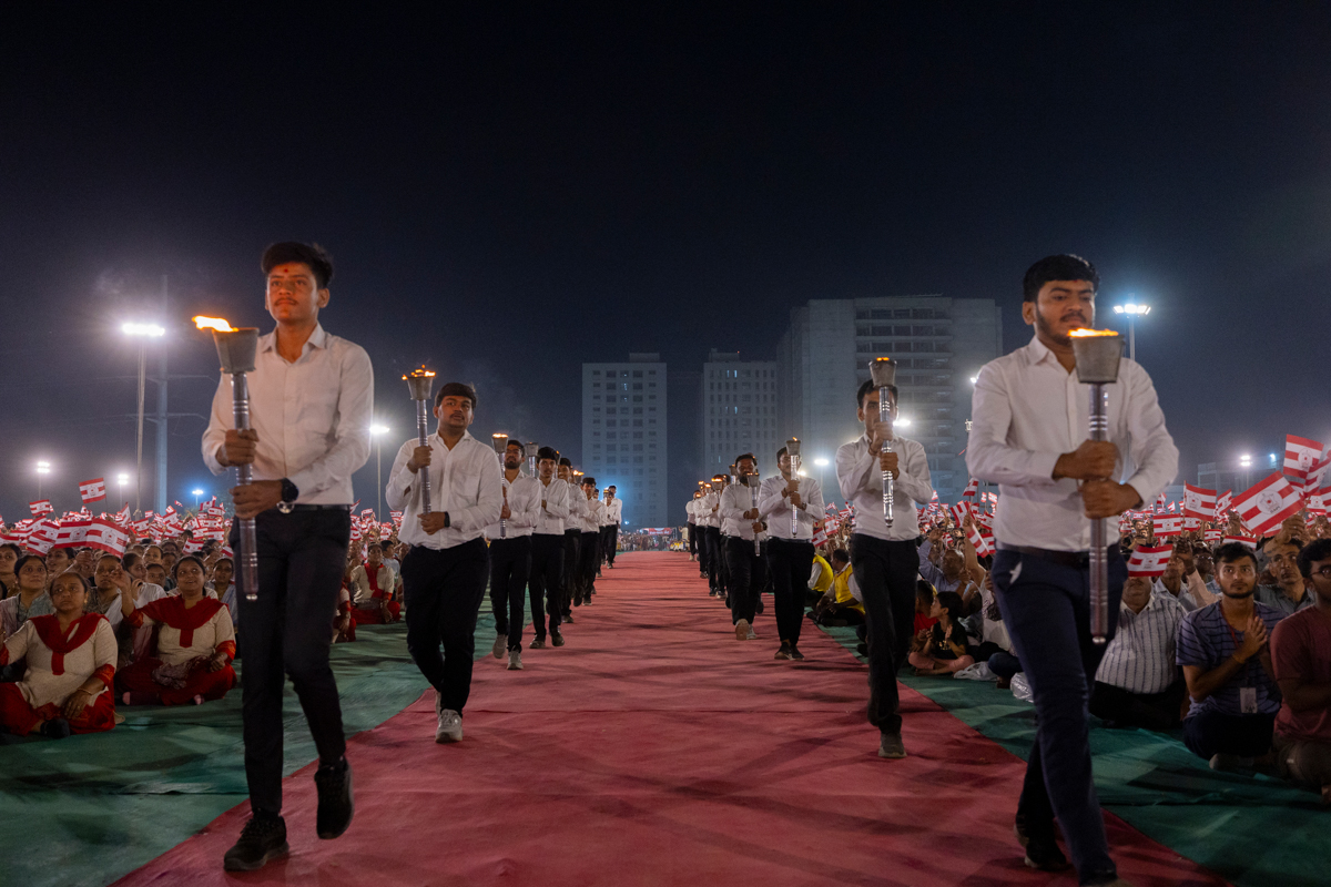 Youths parade with mashals (torches)