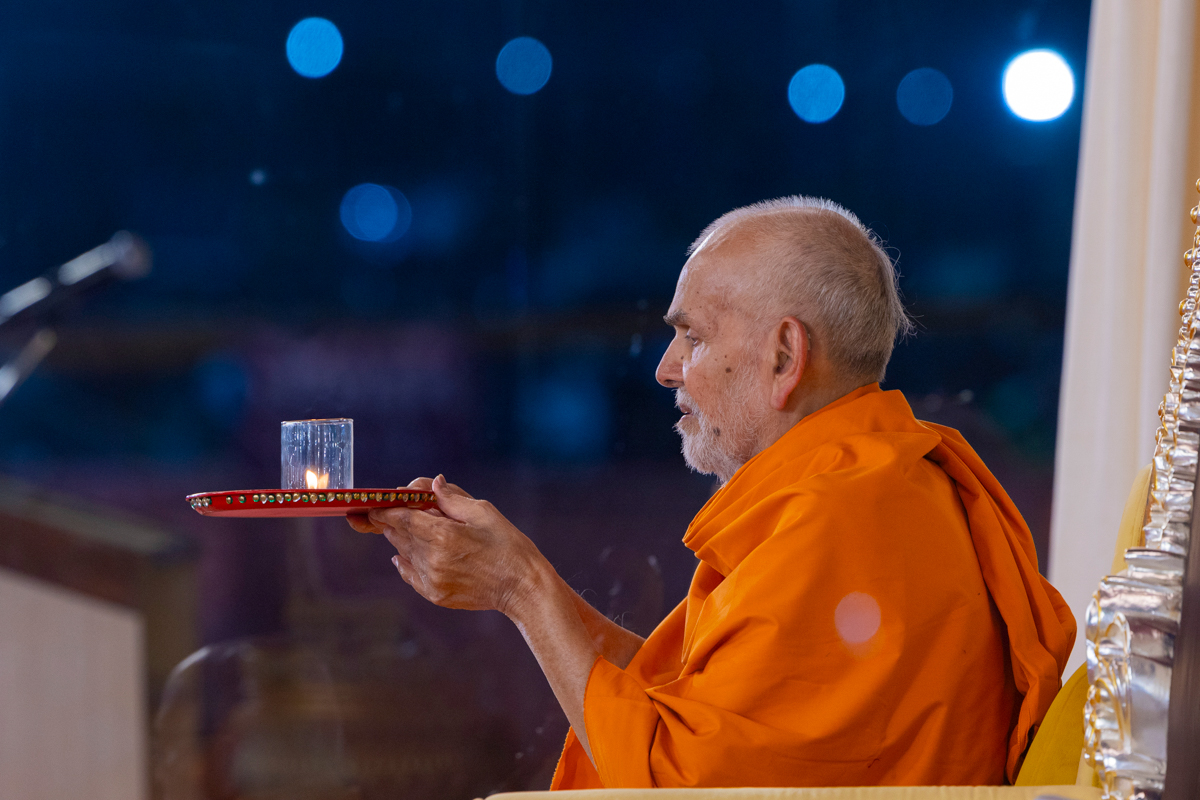 Swamishri performs the evening arti