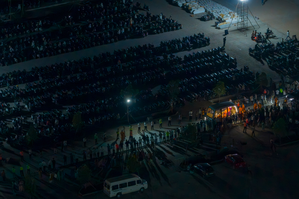 Devotees arrive for evening Sunday satsang assembly
