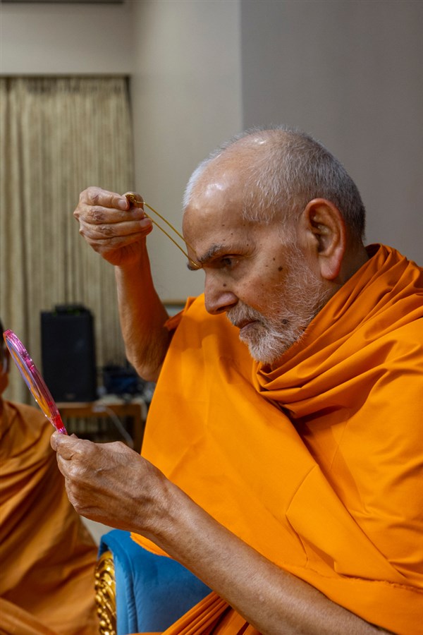 Swamishri applies a tilak