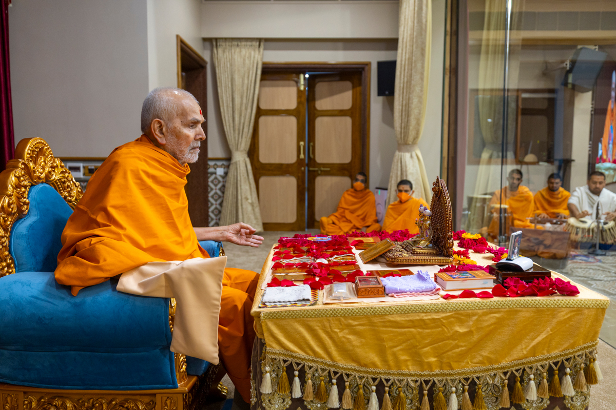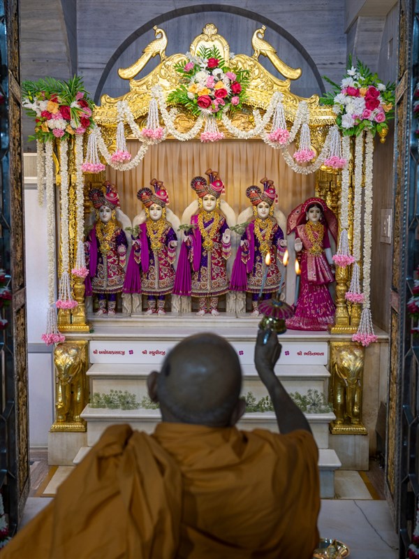 Swamishri performs the morning arti