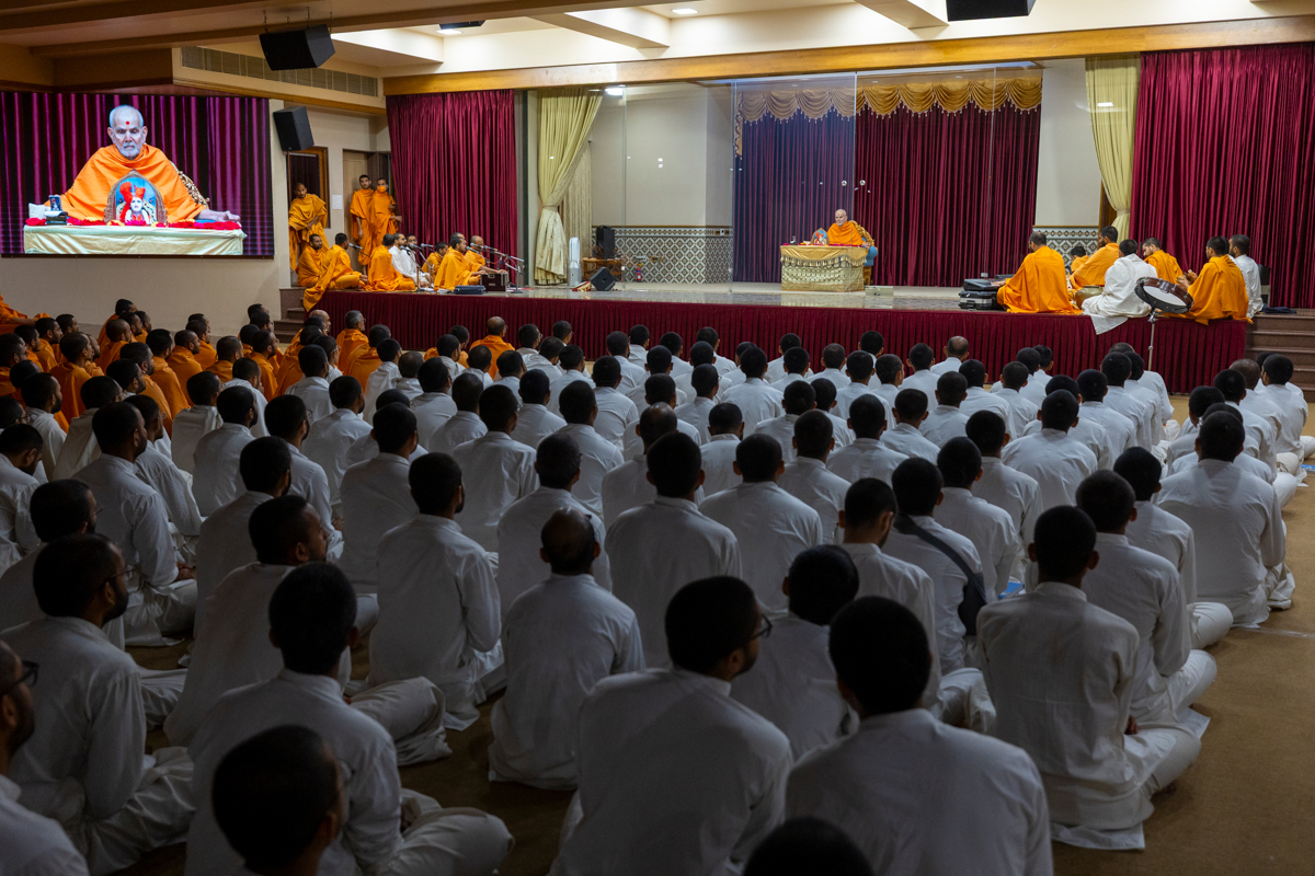 Swamishri blesses the morning assembly